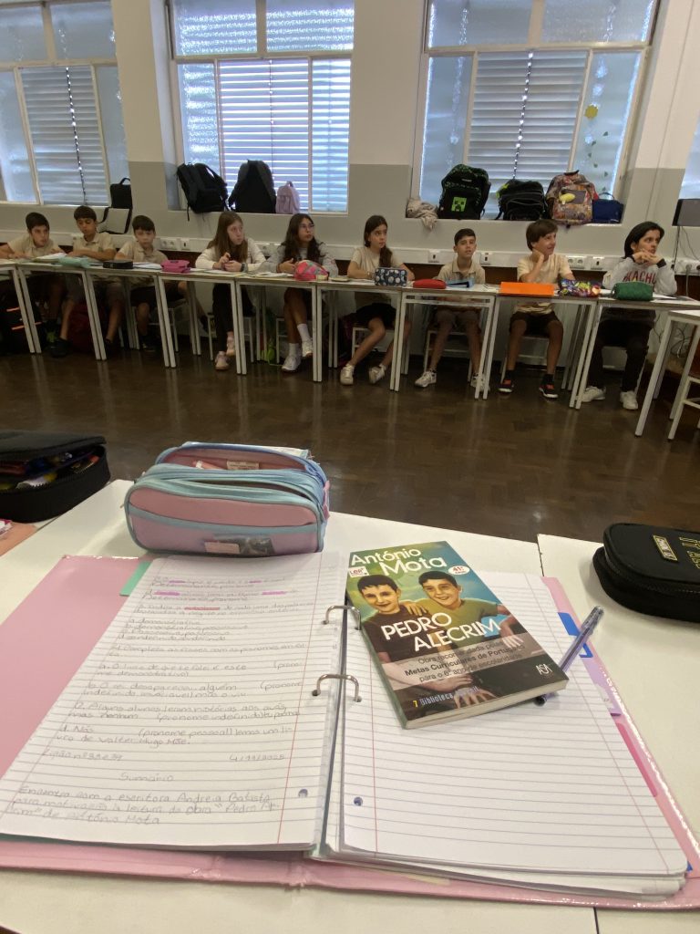 A escritora e programadora cultural Andreia Batista visitou, no dia 04 de novembro, a sala de aula dos alunos do 6.º ano de escolaridade para apresentar a obra “Pedro Alecrim” de António Mota, numa atividade designada ‘Livros Fora da Prateleira’.