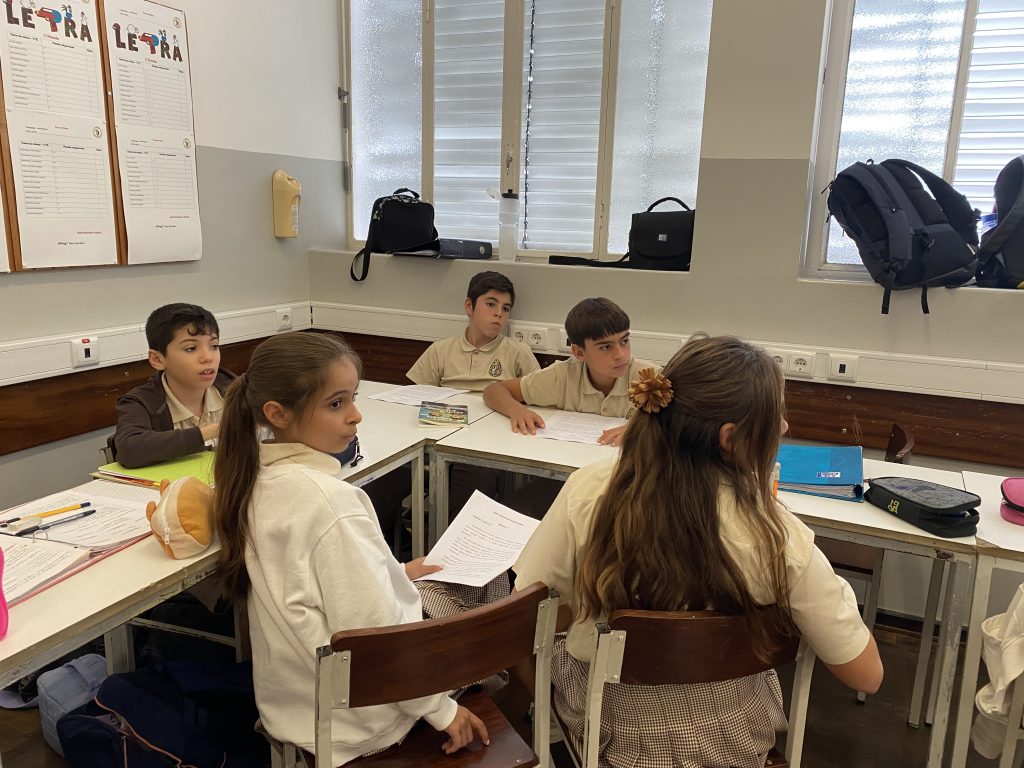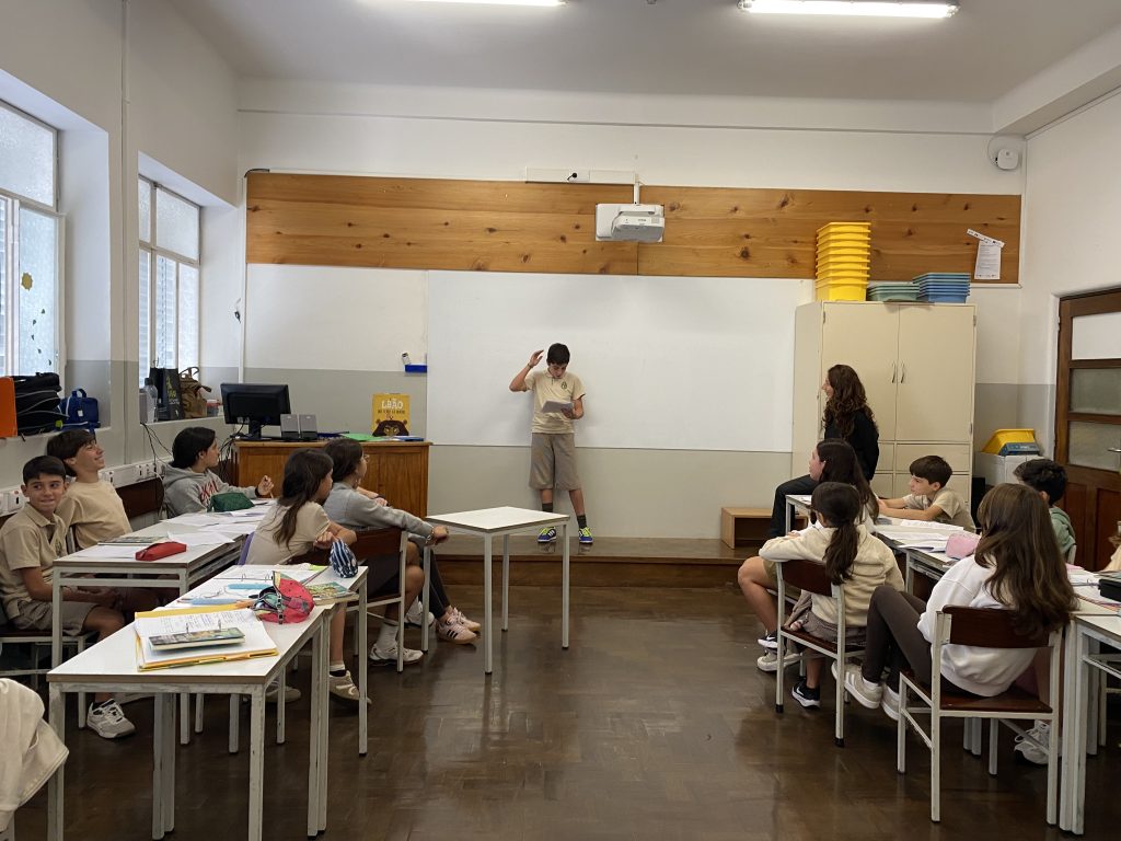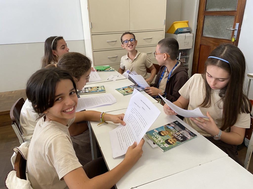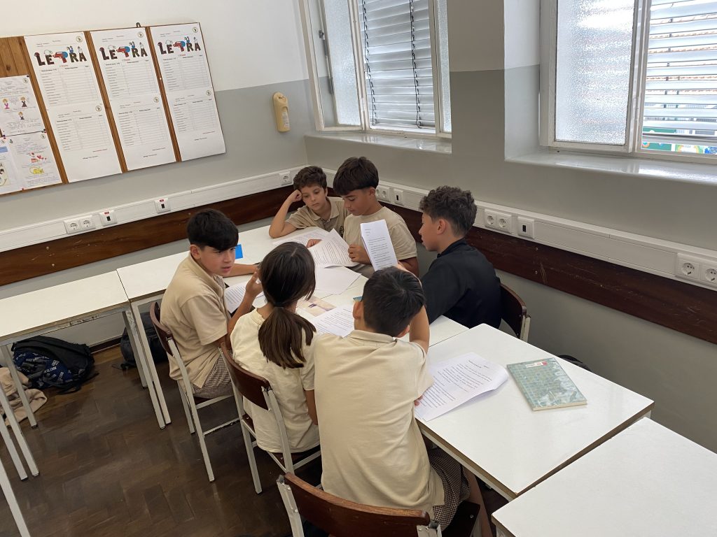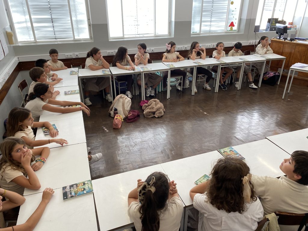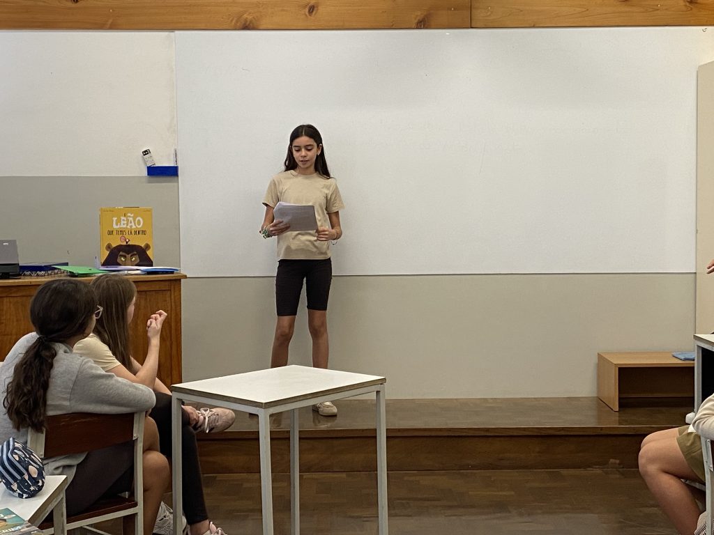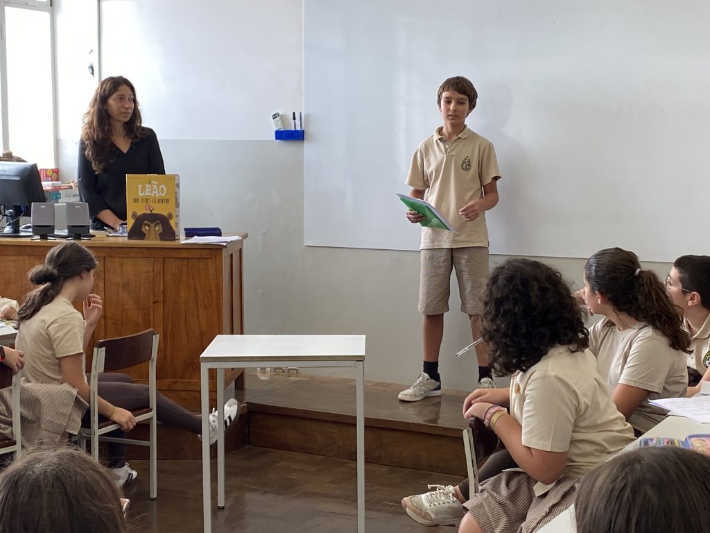 Dispostos em forma de “U” para facilitar a interação, os estudantes participaram numa sessão em que a autora não só falou sobre o livro como também estabeleceu comparações e ligações entre a história e a (sua) própria realidade, tornando a literatura mais próxima e relevante. Após as suas partilhas, uma música, uma carta, uma memória e um conto, a escritora propôs uma atividade prática para consolidar a compreensão do livro. Assim, organizou os alunos em pequenos grupos de trabalho, desafiando-os a criar analogias entre alguns capítulos do livro e situações ou realidades de um mundo que é de todos nós, promovendo, dessa forma, a discussão e o pensamento crítico sobre o texto.
