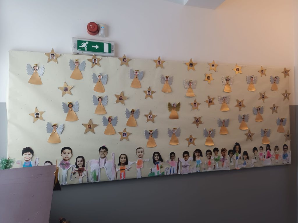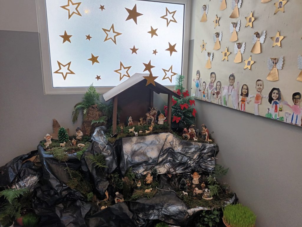Durante o mês de dezembro, o pré-escolar viveu intensamente a celebração do Natal, contando com a colaboração preciosa dos pais e de toda a comunidade educativa. Os encarregados de educação participaram na decoração das árvores de Natal, criando bolas personalizadas que trouxeram cor e alegria às salas. As crianças, por sua vez, prepararam lembranças e semearam trigo, mantendo viva uma tradição cheia de significado.