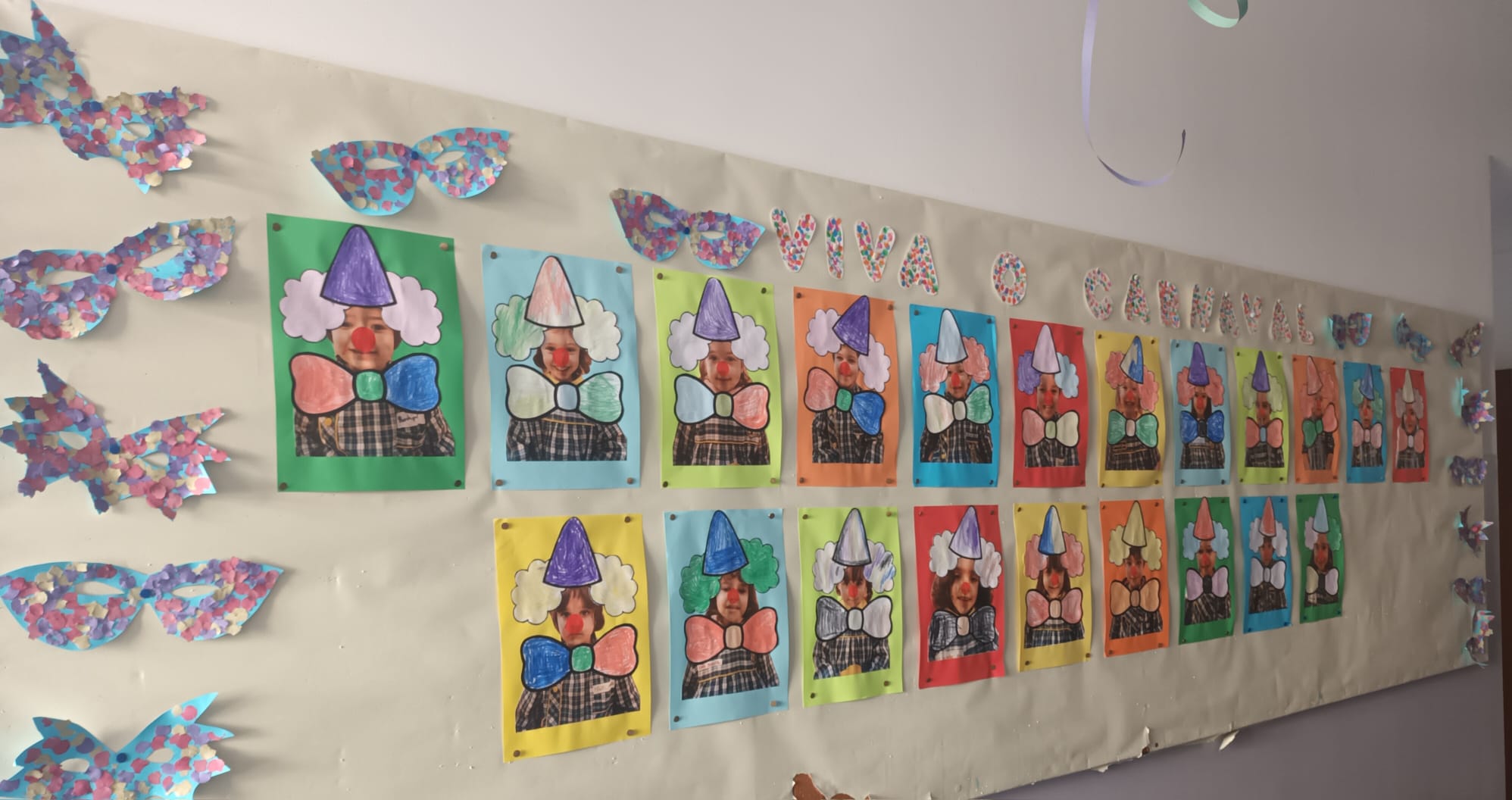 De 09 a 13 de fevereiro de 2026, todas as salas do pré-escolar — Gatinhos, Patinhos, Borboletas, Joaninhas e Peixinhos — viveram uma semana cheia de diversão, criatividade e muitas aprendizagens, numa celebração dedicada ao Carnaval. Este ano, o tema escolhido foi “O Palhaço Reciclino”, destacando a importância da reciclagem e do cuidado com o nosso planeta.
