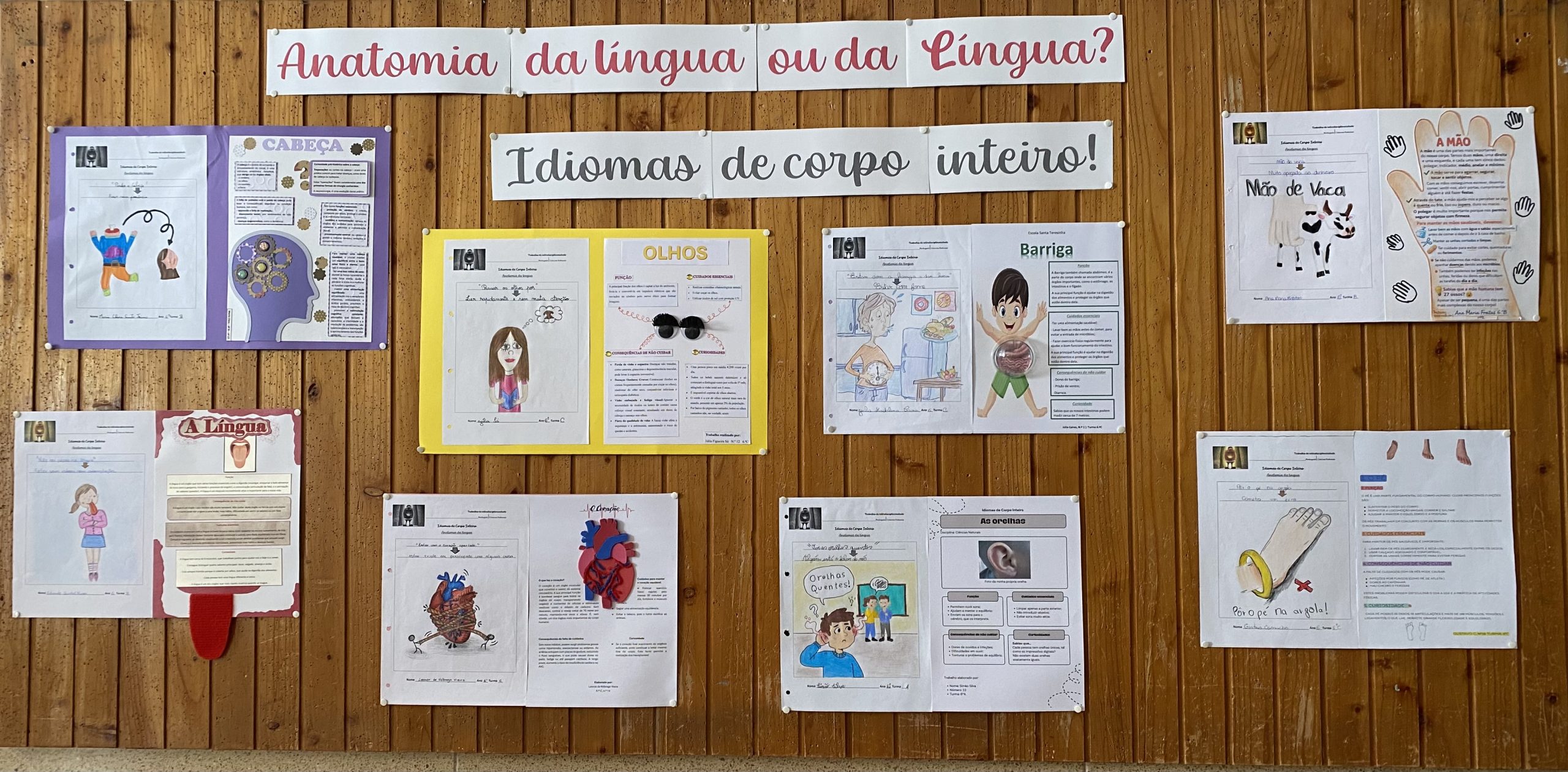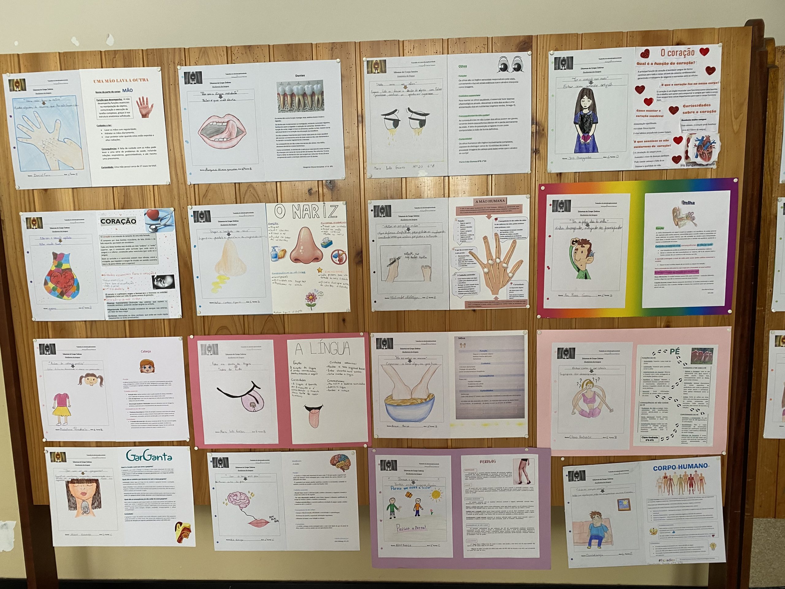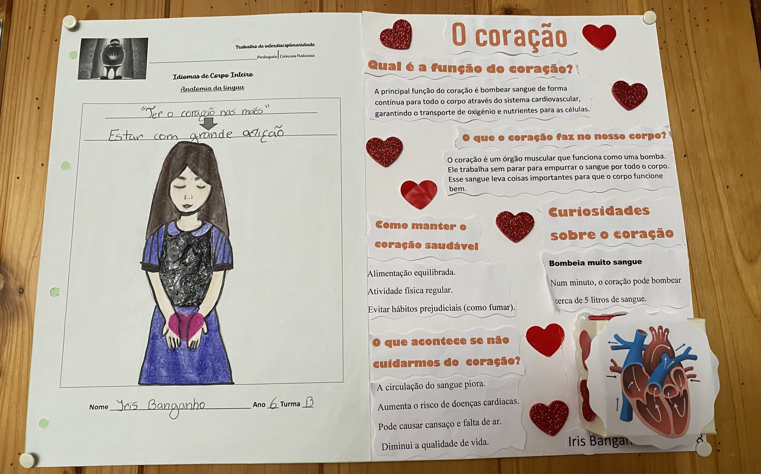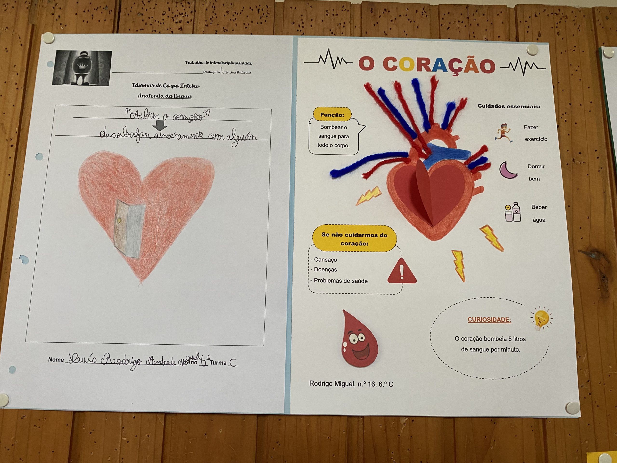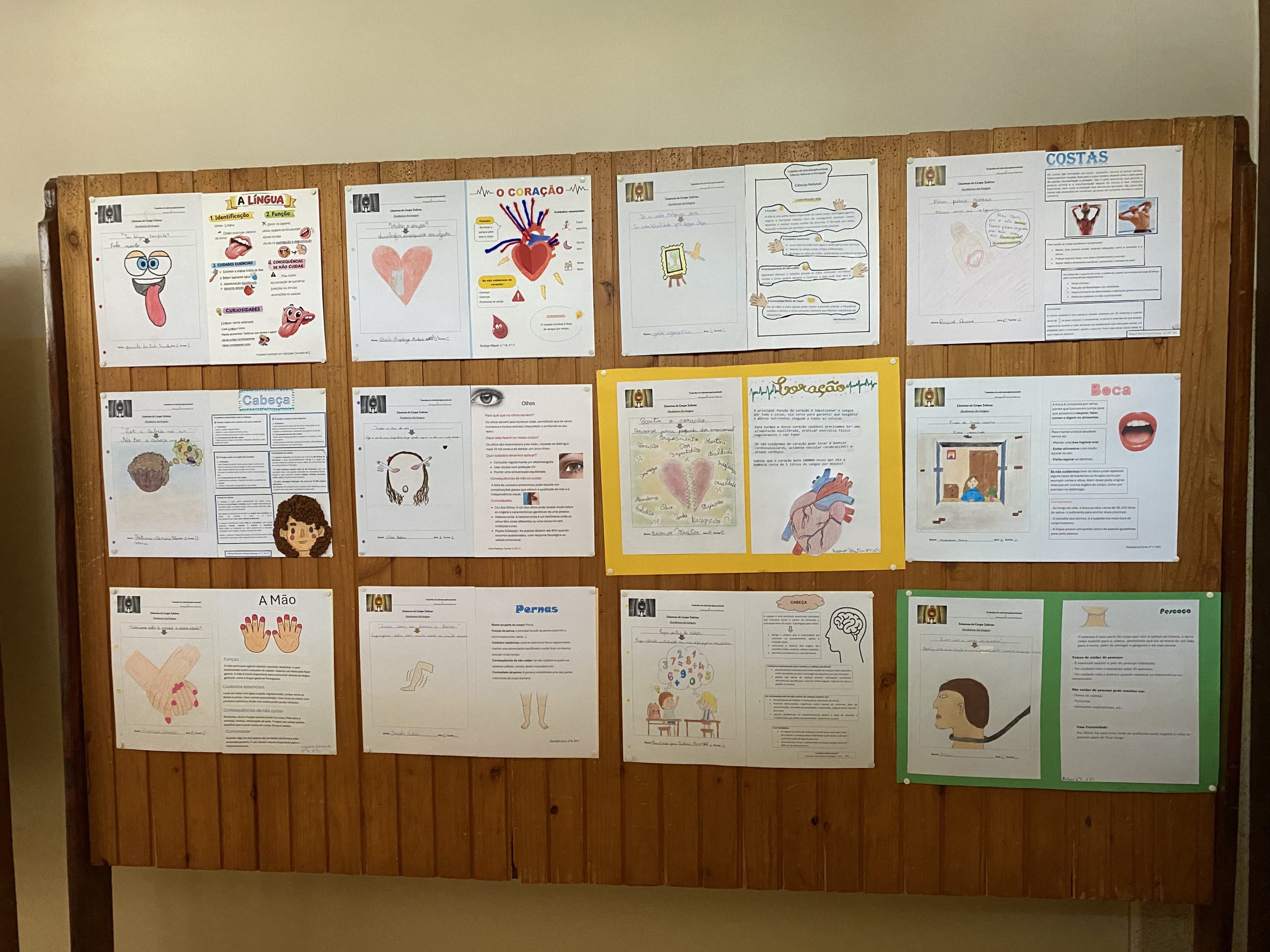 Em paralelo, na disciplina de ciências naturais, cada aluno trabalhou o órgão do corpo humano mencionado na expressão idiomática atribuída, explorando as suas características e funções.