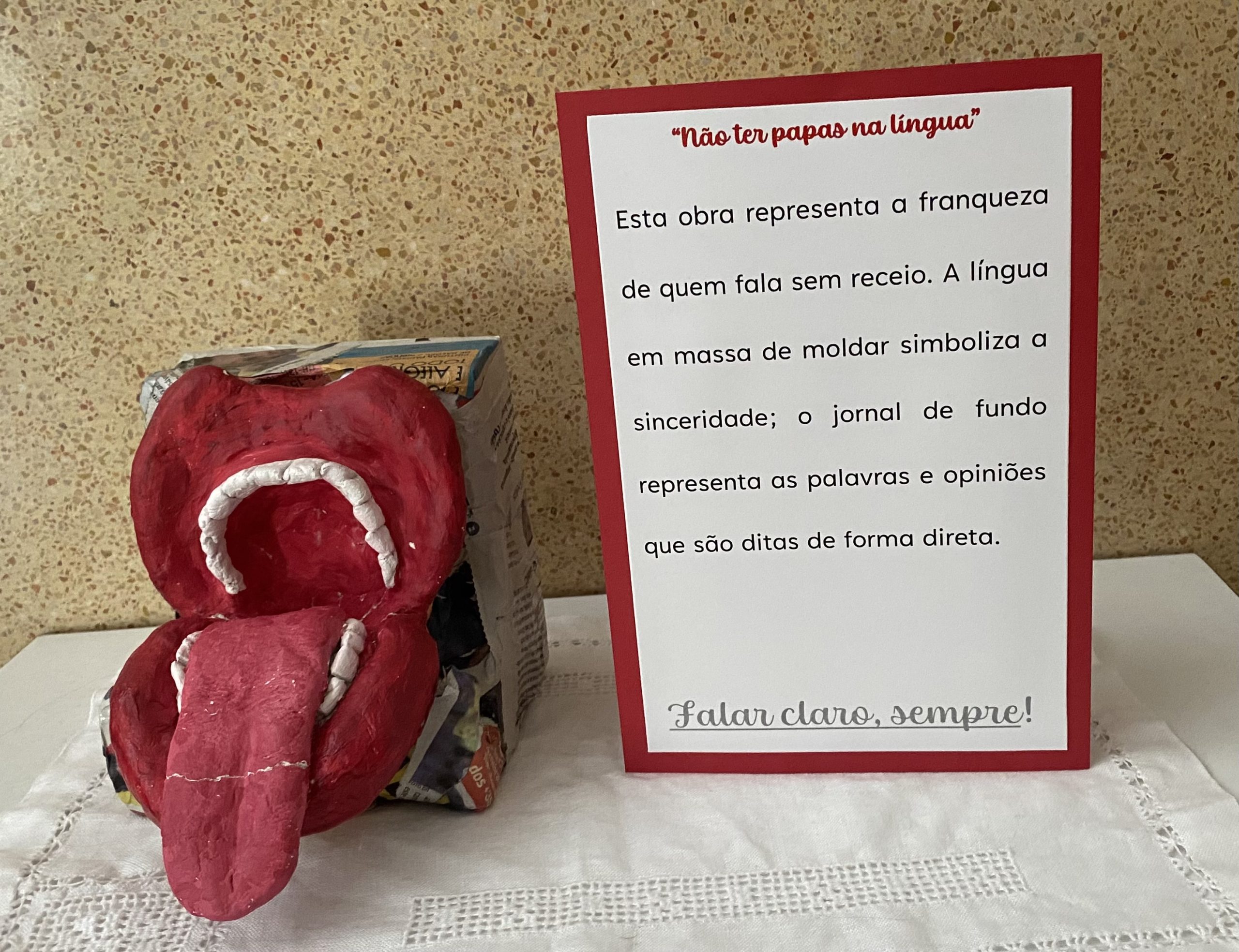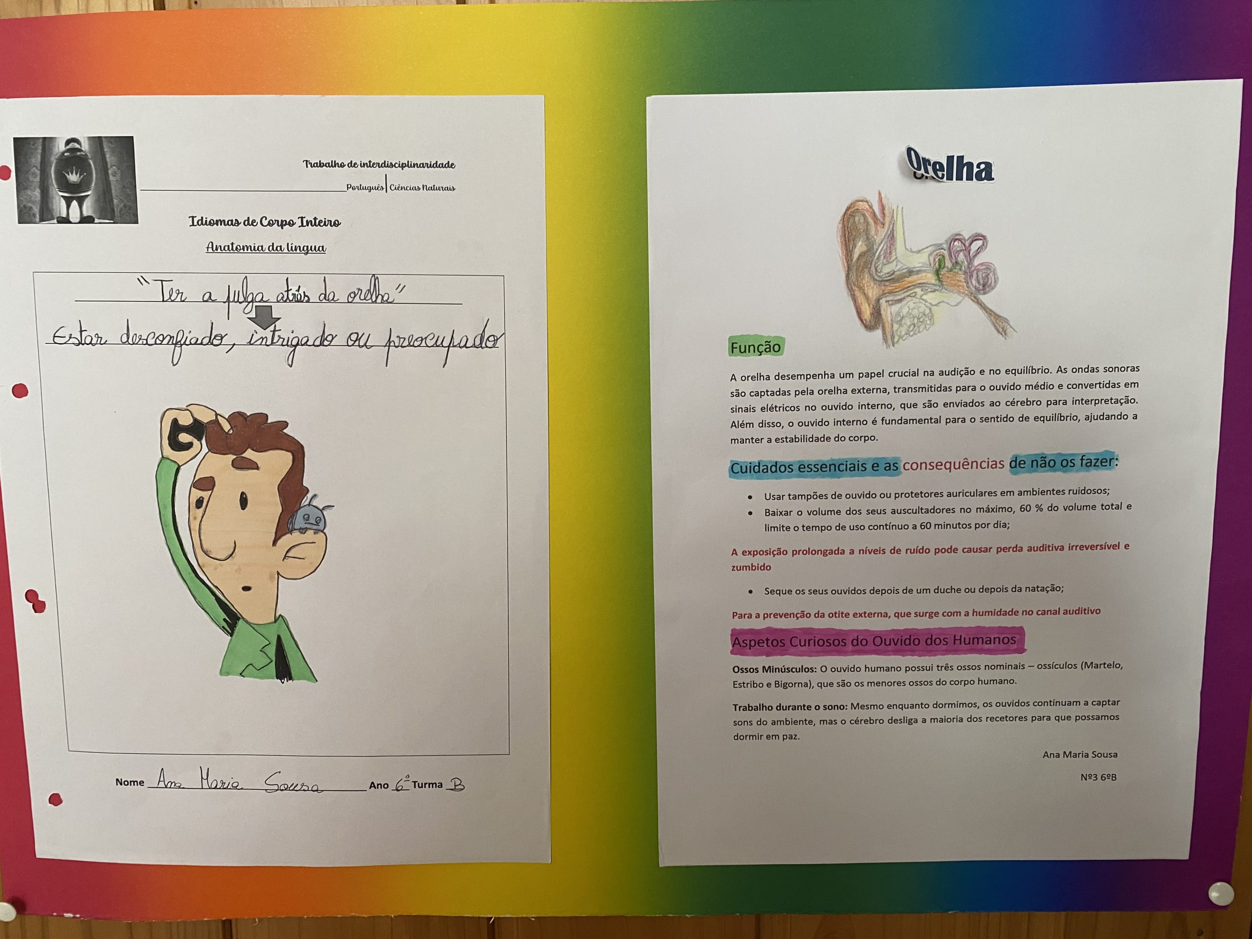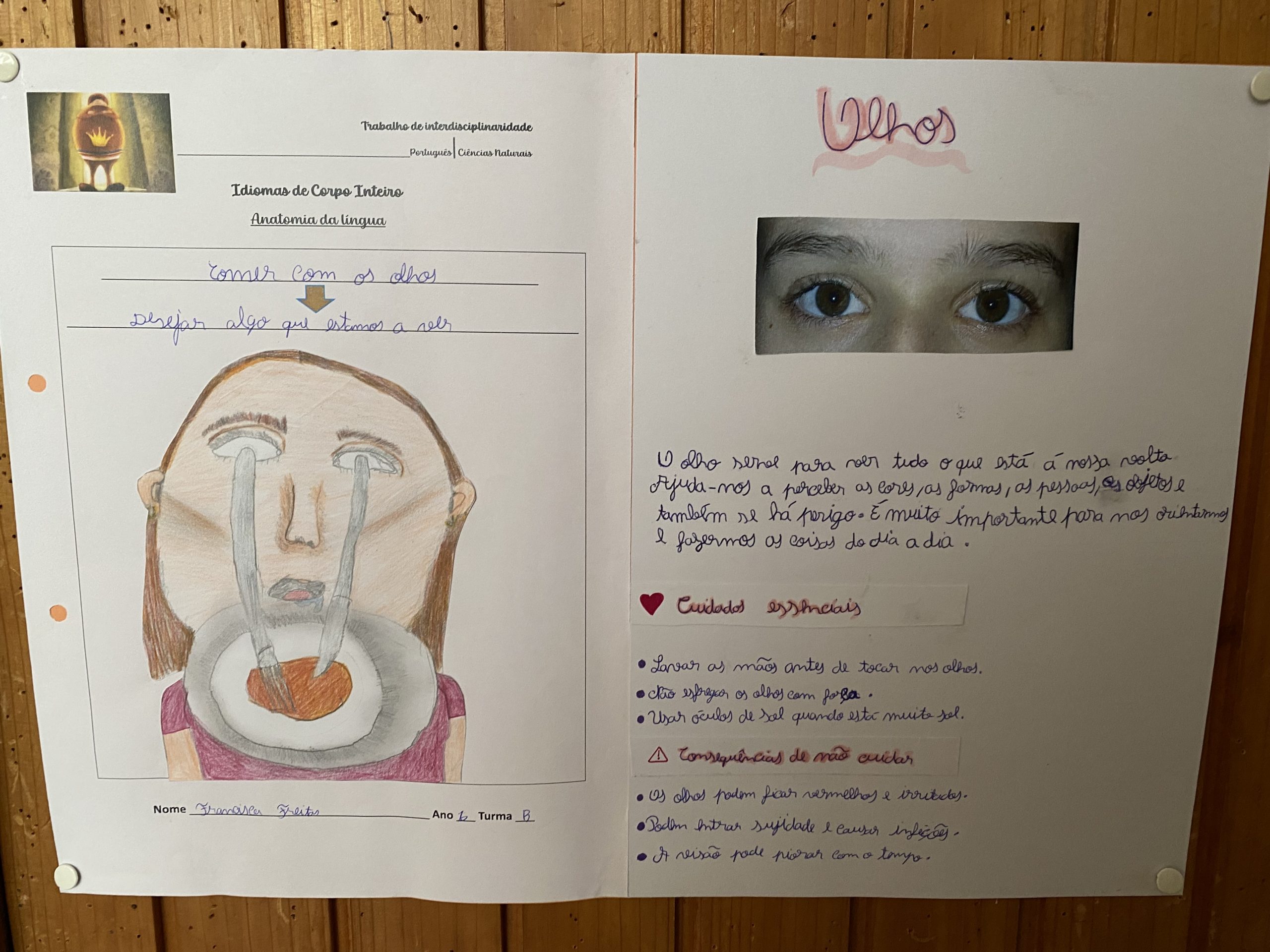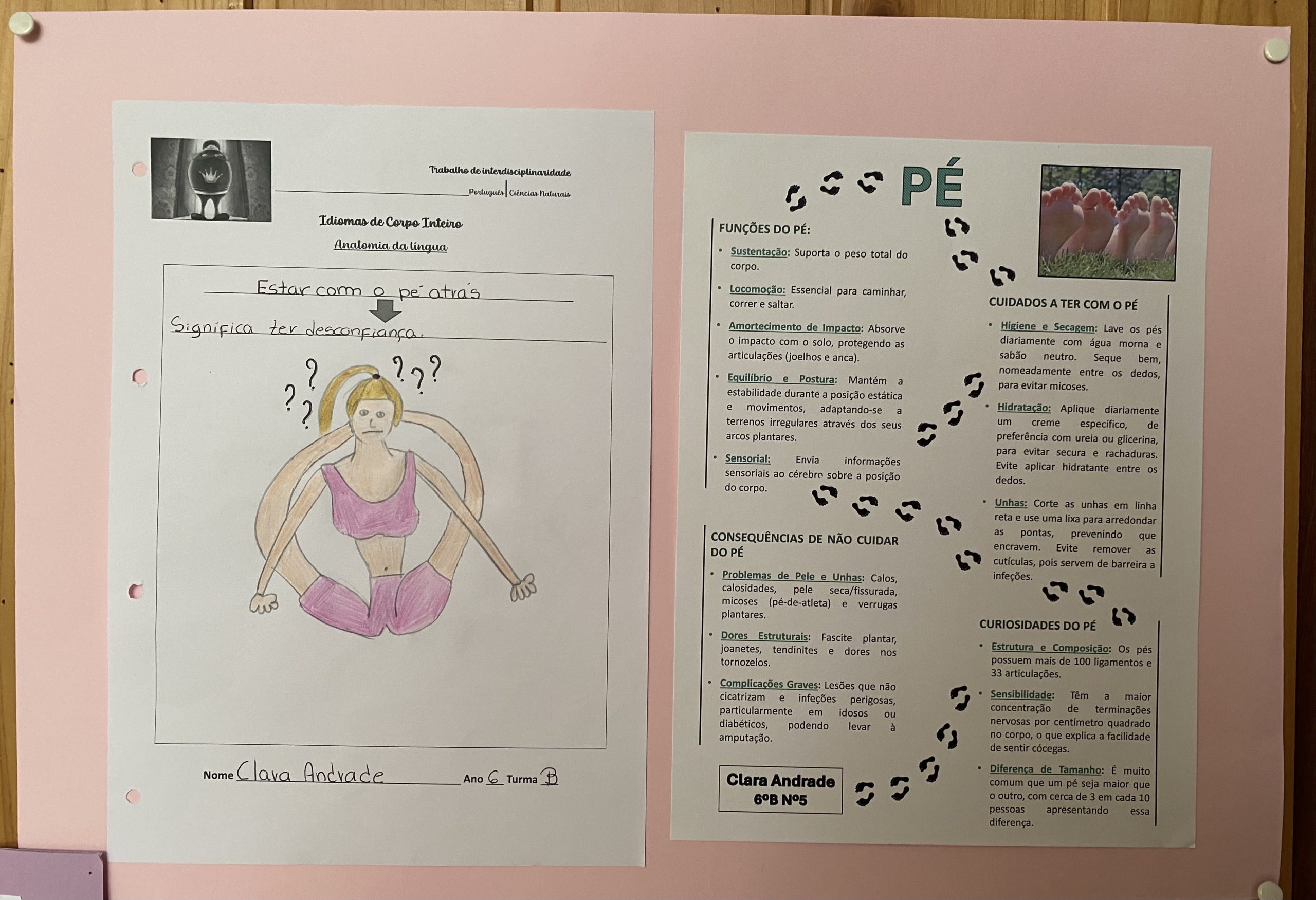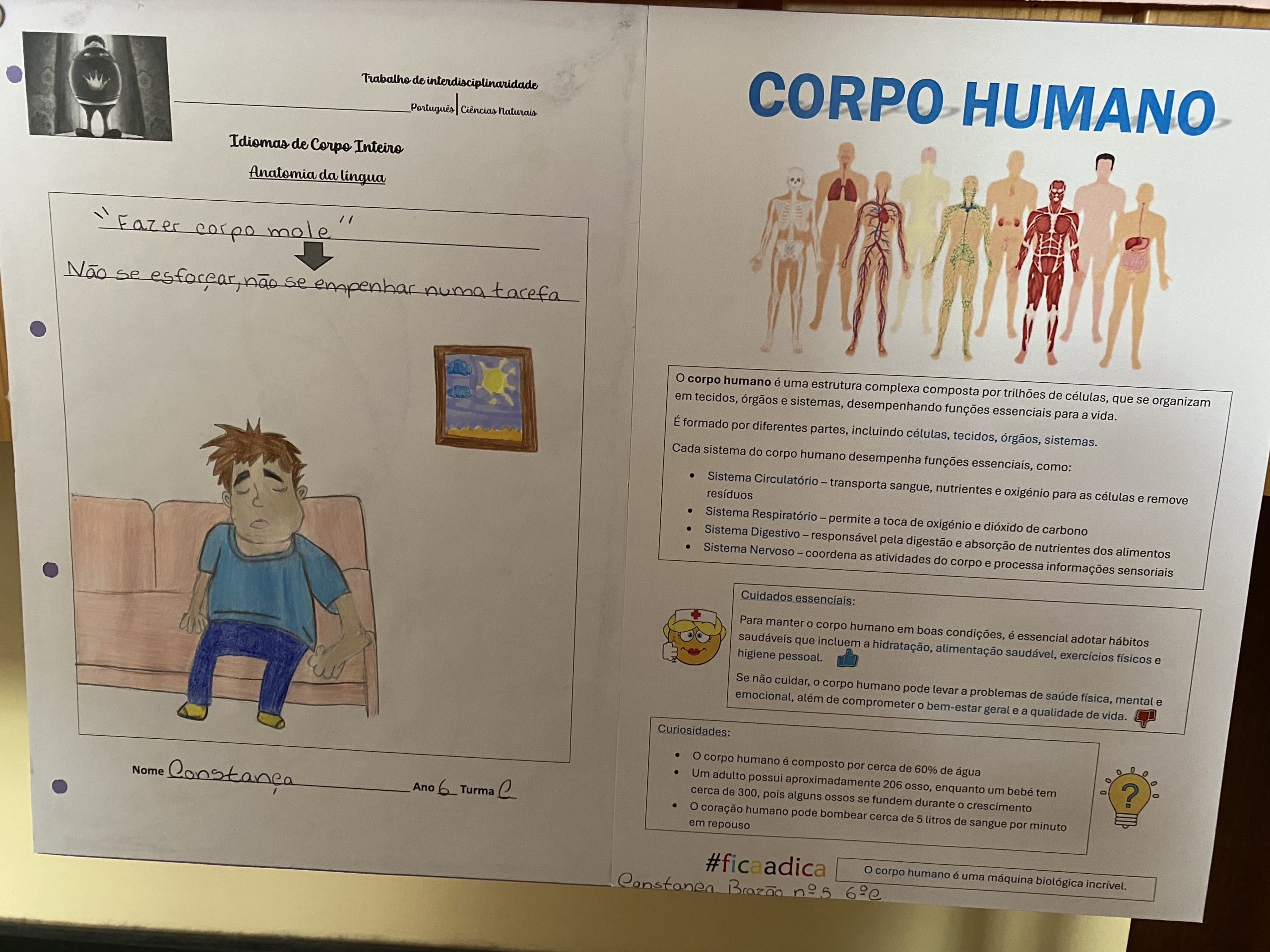 Em paralelo, na disciplina de ciências naturais, cada aluno trabalhou o órgão do corpo humano mencionado na expressão idiomática atribuída, explorando as suas características e funções.