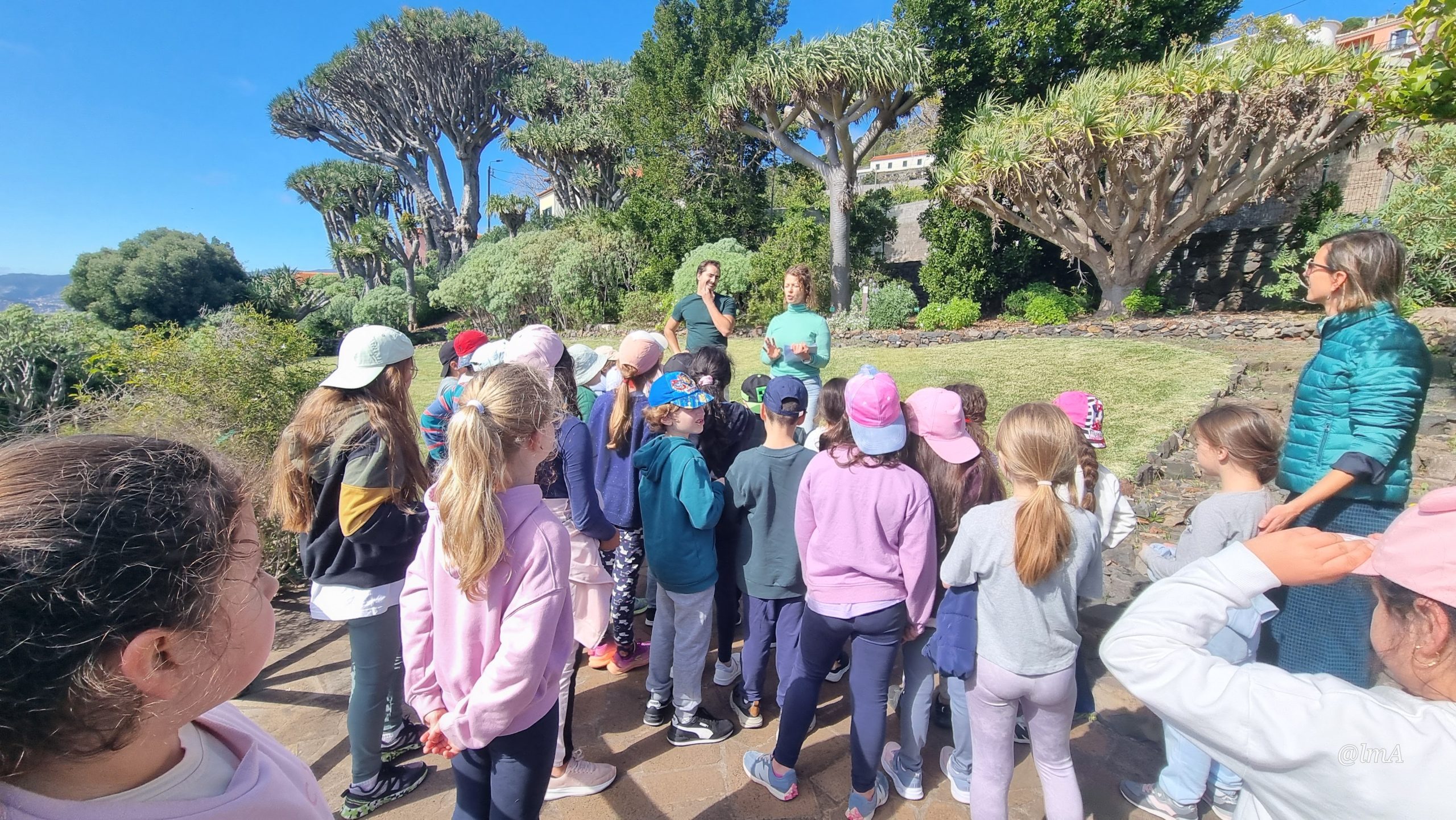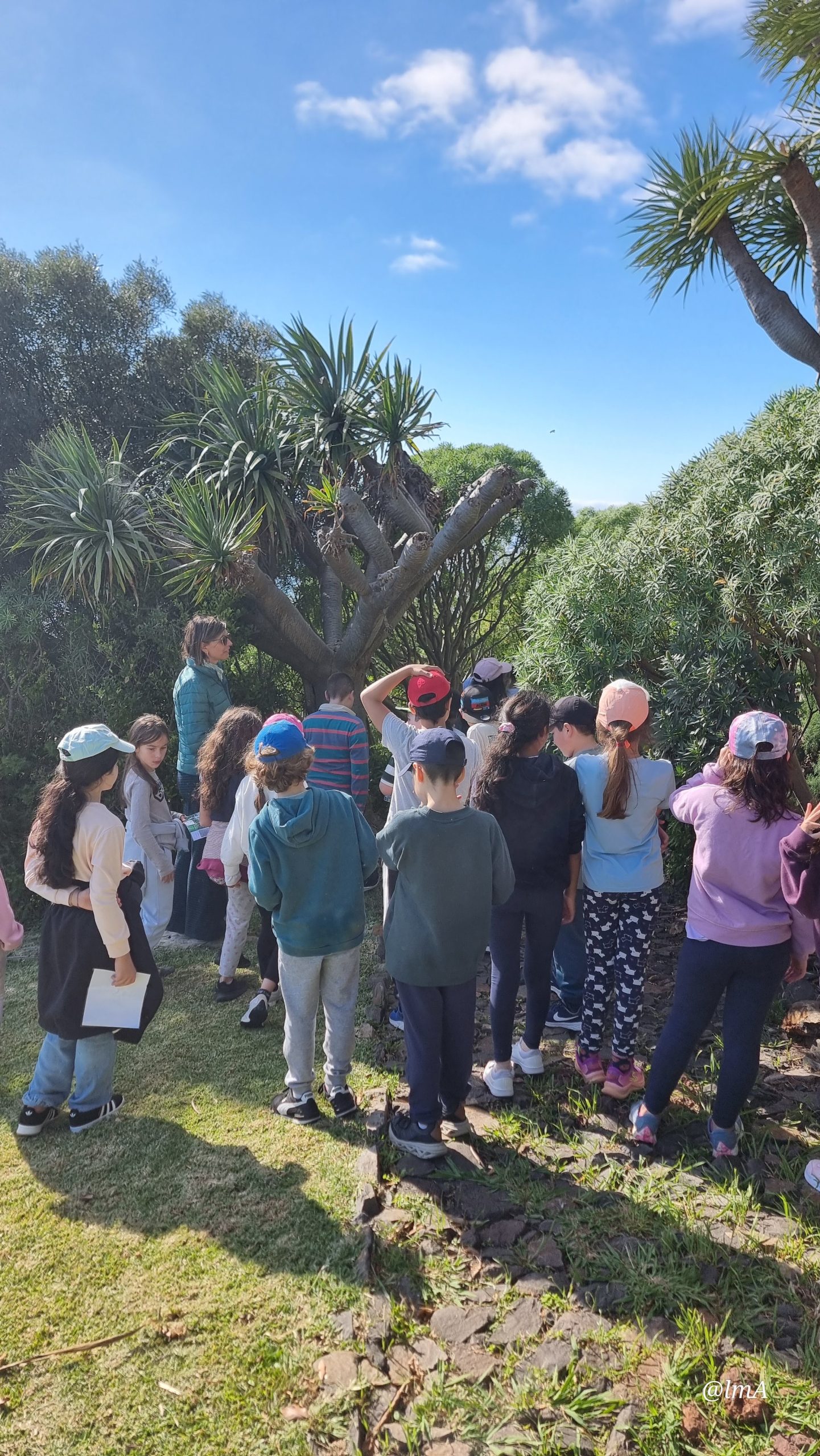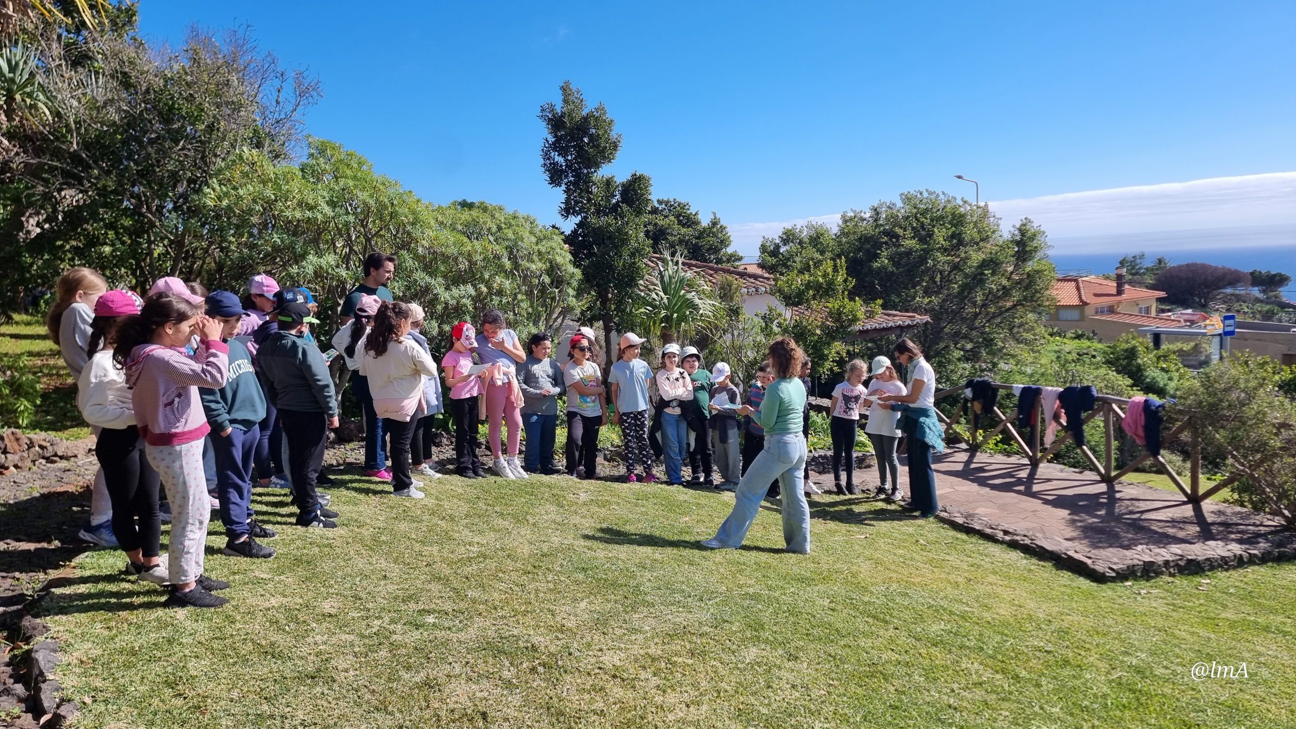 Ao longo da visita, os alunos assumiram o papel de “descobridores”, participando num jogo de exploração que os levou a identificar e reconhecer as espécies existentes no núcleo. Distinguiram plantas endémicas, nativas e invasoras, compreendendo a importância da preservação da biodiversidade regional.