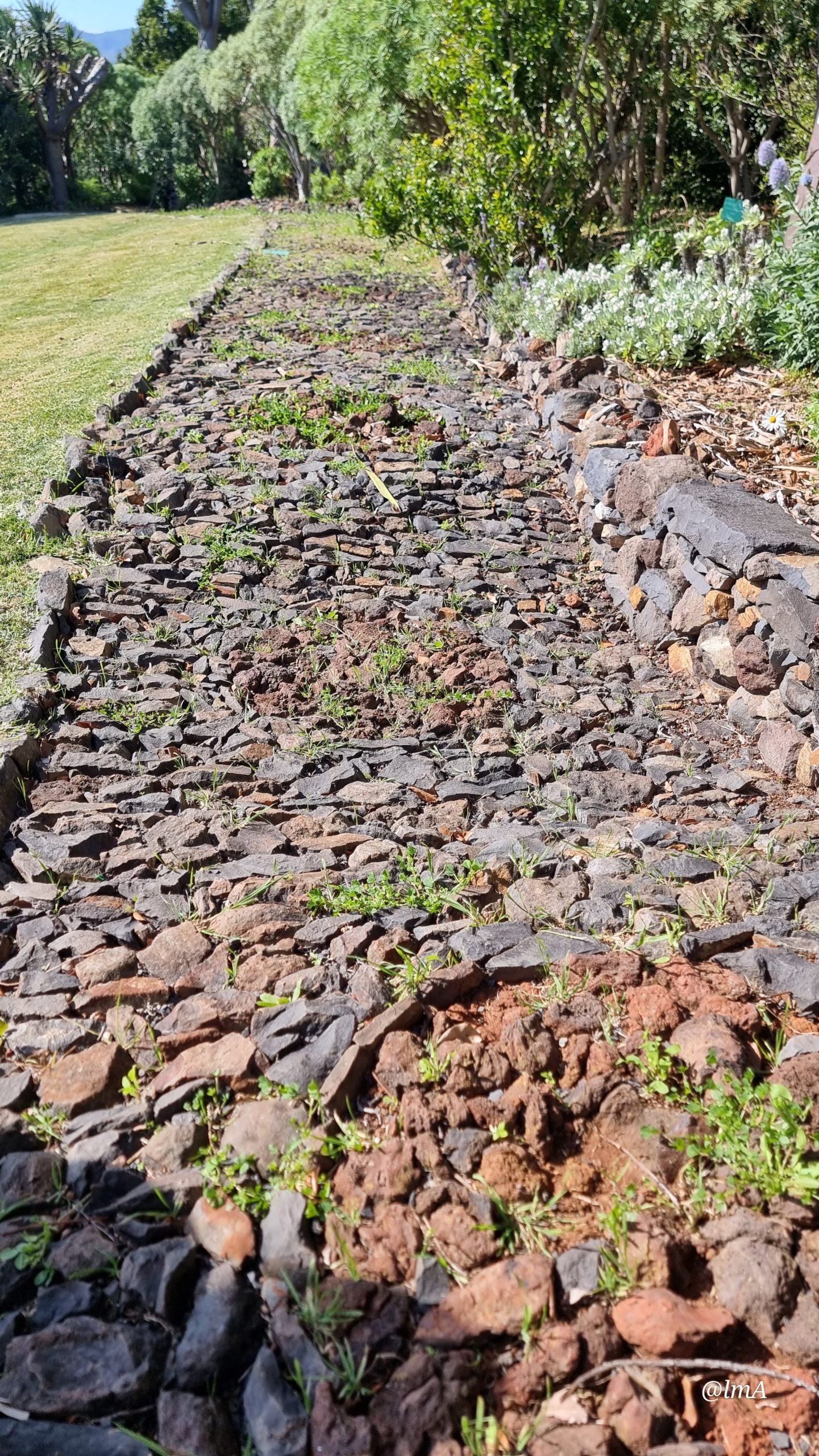O percurso incluiu a passagem por um troço em “calçada de cabra”, um tipo tradicional de calçada madeirense, que serviu de ponto de partida para a descoberta das rochas existentes no local. A partir desta observação, os alunos refletiram sobre o processo de formação da ilha da Madeira, abordando a sua origem vulcânica.