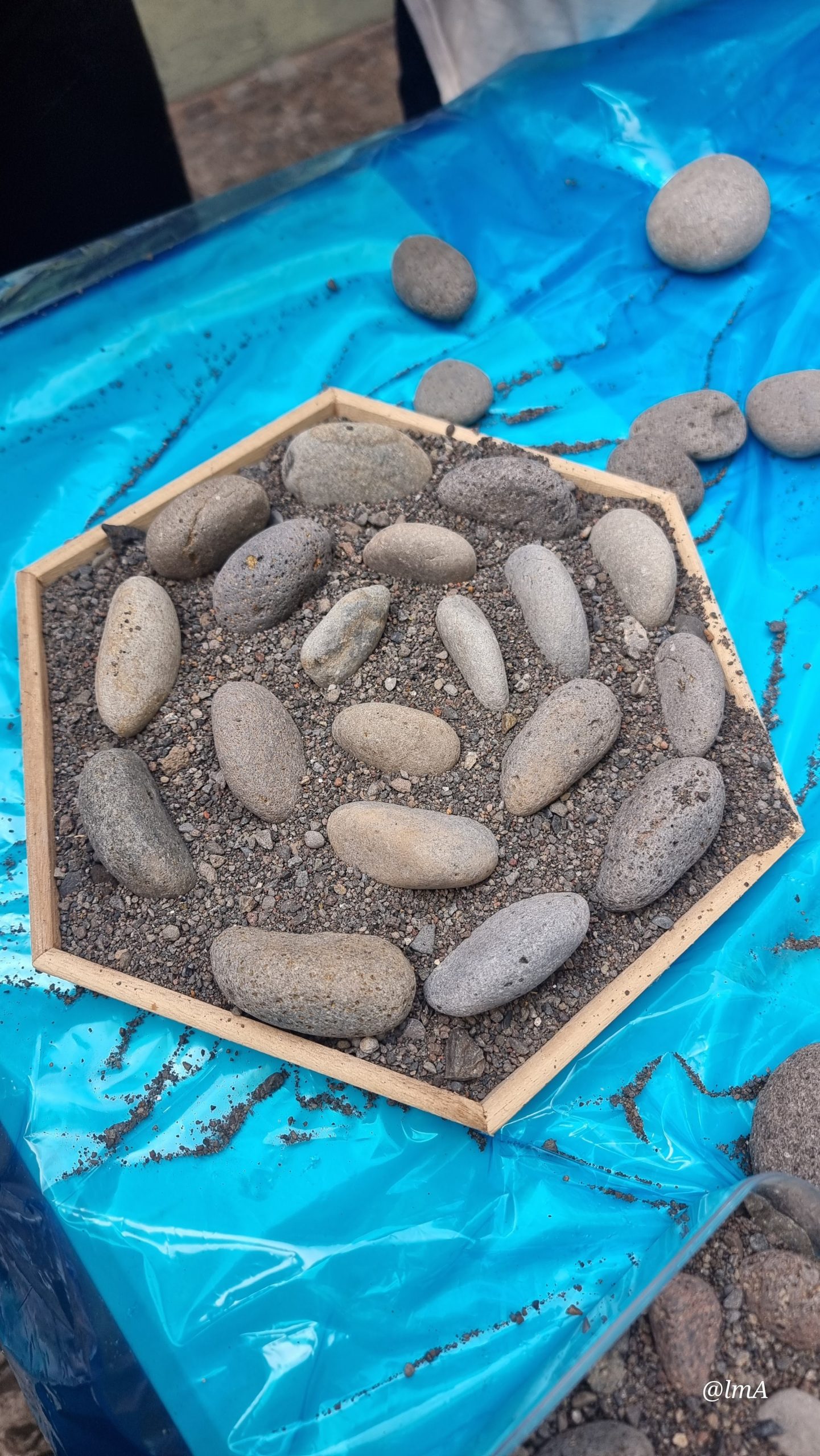 Num momento particularmente entusiasmante, os alunos assumiram o papel de calceteiros, construindo as suas próprias pequenas calçadas, aplicando os conhecimentos adquiridos ao longo da atividade.