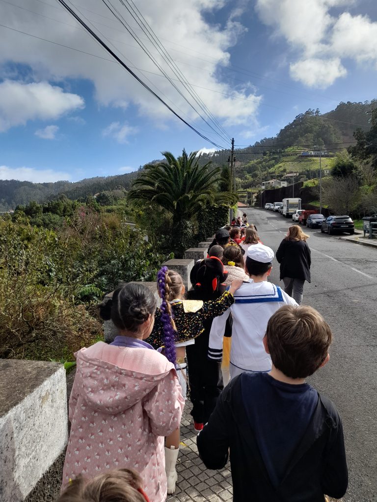 Desta feita, na solarenga tarde de inverno do dia 13 de fevereiro, houve pretexto ideal para um passeio carnavalesco pelas redondezas da nossa escola. Com muitos disfarces à mistura e espírito de folia e alegria, os alunos do 1º Ciclo brincaram livremente no Parque Infantil da freguesia de Santo António da Serra, apreciaram a verdejante natureza envolvente e respiraram ar puro…