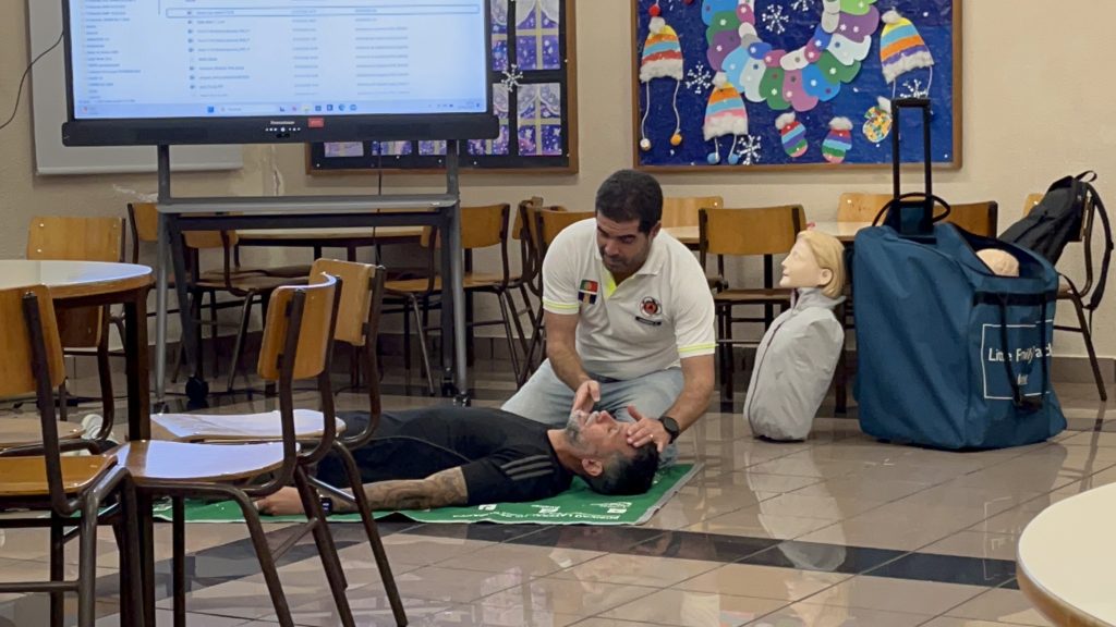 O pessoal docente e não docente participou numa ação de sensibilização “Suporte Básico de Vida”, no âmbito do projeto ESPR, orientada por Leonardo Ribeiro (EMIR), reforçando competências fundamentais para atuar em situações de emergência. ![]()