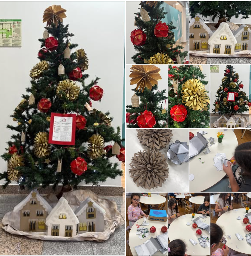 No âmbito deste passatempo, os nossos alunos participaram na decoração de uma árvore de Natal, criando enfeites com materiais reutilizados. ![]()