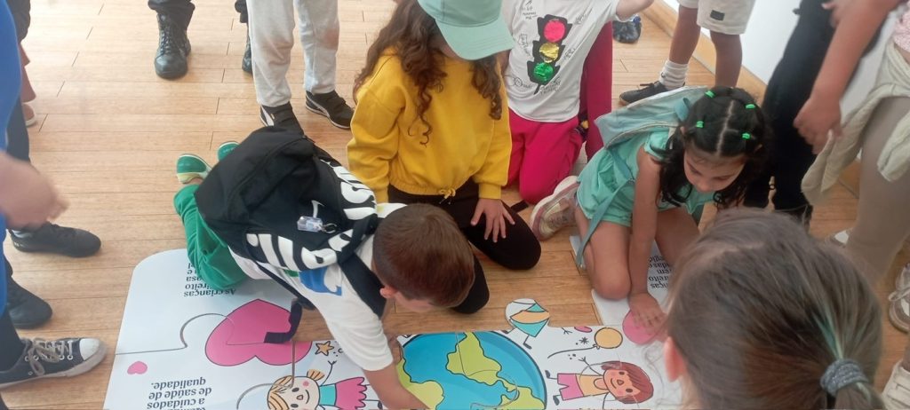 Após o lanche, os alunos receberam um mapa com várias estações que nos deram a conhecer serviços/instituições do nosso concelho e, em simultâneo, recordaram os Direitos das Crianças e recebiam uma das peças do puzzle final, em cada estação.