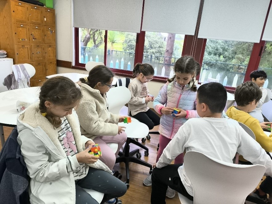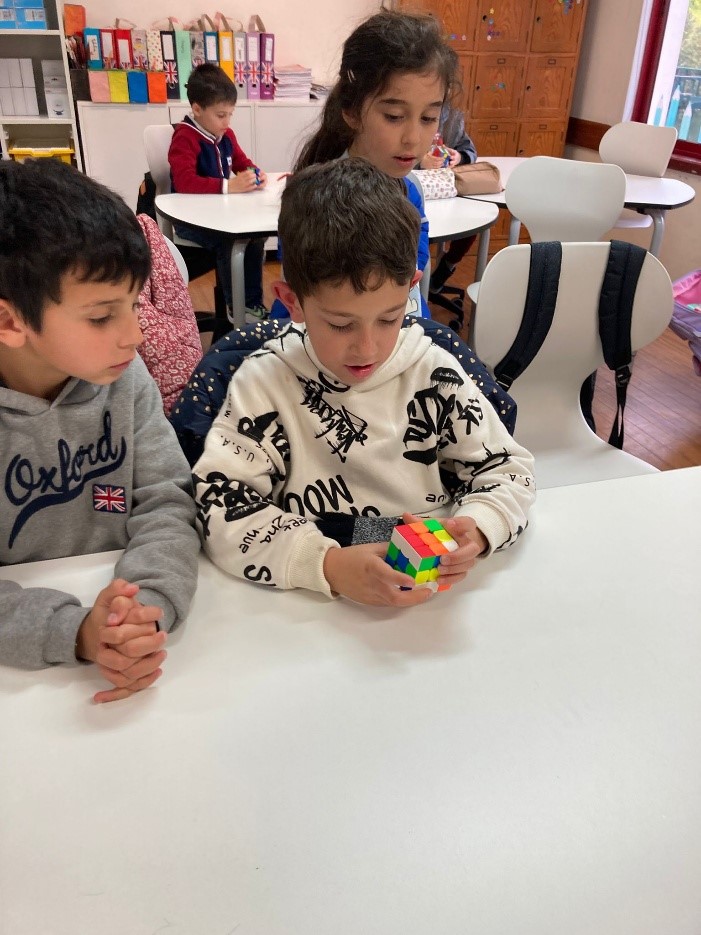 As comemorações encerraram no dia 20 de março com uma demonstração de cubos mágicos, dinamizada pelos alunos convidados Tomás Inácio e Diego Gonçalves, da Escola Básica e Secundária da Ponta do Sol. A atividade foi um verdadeiro sucesso: os alunos ficaram fascinados com as técnicas apresentadas e tiveram oportunidade de experimentar diferentes tipos de cubos mágicos.