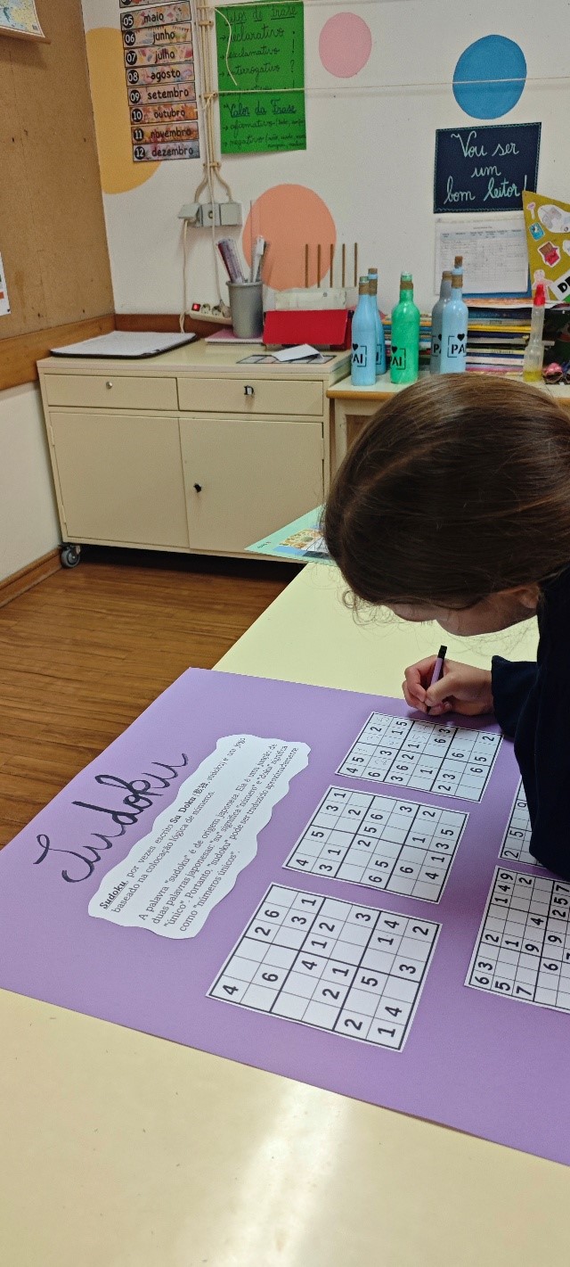 A nossa escola celebrou o Dia da Matemática com um conjunto de atividades dinâmicas e divertidas que envolveram todos os alunos. Entre os dias 9 e 20 de março, esteve disponível para visita uma exposição com trabalhos realizados pelos alunos, bem como materiais matemáticos antigos e modernos. Esta exposição despertou grande curiosidade e interesse, permitindo aos visitantes explorar diferentes formas de ver e compreender a Matemática. Em simultâneo, o Clube “Jogos Matemáticos” promoveu diversos desafios, como quebra-cabeças, sudoku e outros jogos de raciocínio. Os alunos participaram com entusiasmo, aprendendo Matemática de forma lúdica e estimulante.