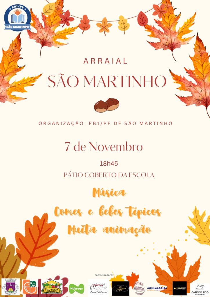 Convidamos os pais/encarregados de educação e seus familiares, a participarem no tradicional arraial de São Martinho da nossa escola que ocorrerá no dia 7 de novembro, a partir das 18h 45m.