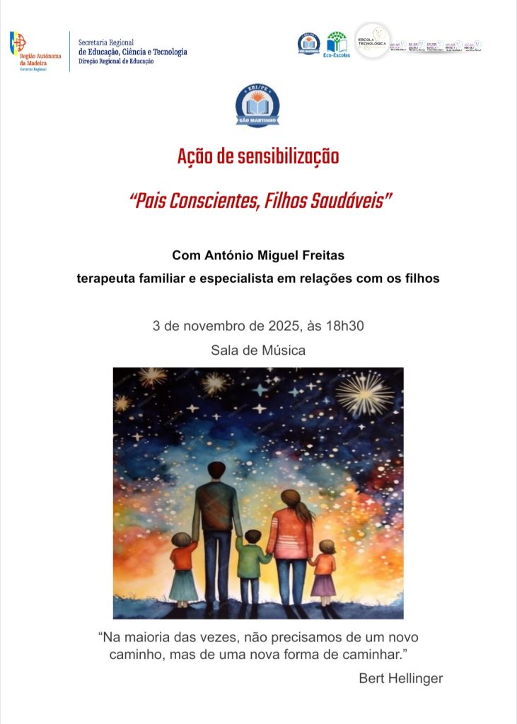 Convidamos os Encarregados de Educação para a Ação de sensibilização“Pais Conscientes, Filhos Saudáveis”, no dia 3 de novembro, às 18h30,