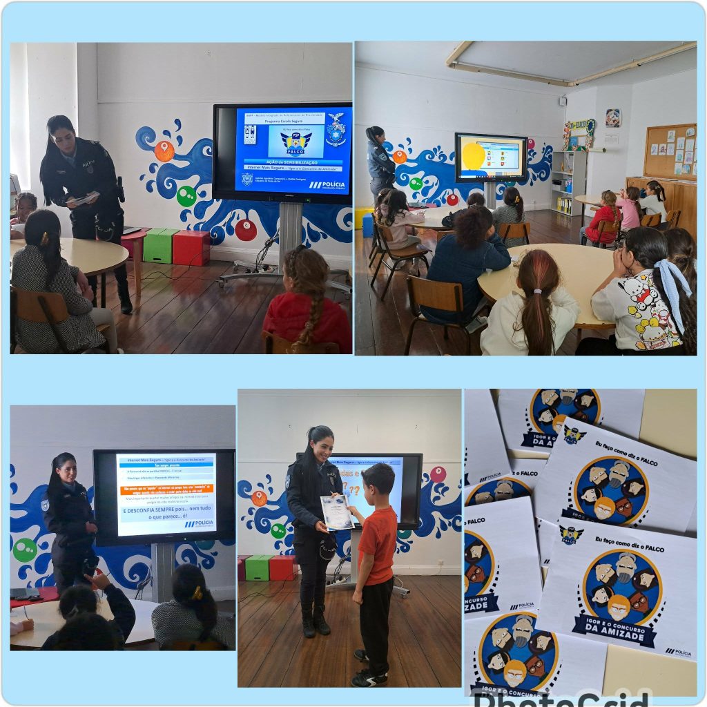 A EB1/PE da Lombada recebeu, na terça-feira, 3 de Fevereiro, uma Ação de Sensibilização dedicada à segurança na Internet, dirigida aos alunos e dinamizada pela agente Matilde Rodrigues, da Polícia de Segurança Pública, da esquadra da Ponta do Sol, no âmbito do Programa Escola Segura. A iniciativa integra-se no Projeto da Segurança da Internet, coordenado na escola pela docente Susana Vieira. Sob o tema ‘Internet Mais Segura — ‘Igor e o Concurso da Amizade’’, a sessão combinou apresentação multimédia e diálogo com as crianças, procurando desenvolver hábitos de prevenção e comportamentos responsáveis no ambiente digital. Entre as recomendações destacadas estiveram a não partilha de dados pessoais (como nome, morada, escola ou contacto telefónico), a recusa de interações com desconhecidos — mesmo quando alegam ser pessoas “famosas” — e a importância de pedir sempre apoio a um adulto antes de publicar fotografias online.