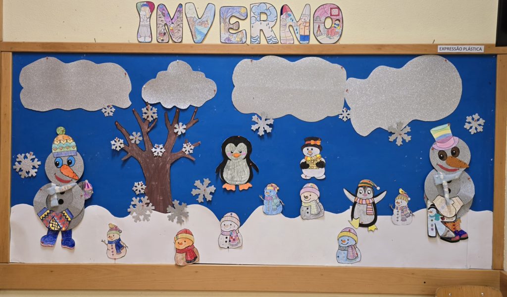 Trabalhos realizados na atividade de Expressão Plástica sobre o inverno.
