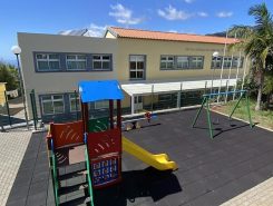 As crianças que frequentam a sala do Pré-escolar 3/4 anos realizaram algumas atividades, nos finais de outubro, de exploração livre de desenho com giz no chão do recreio da escola.