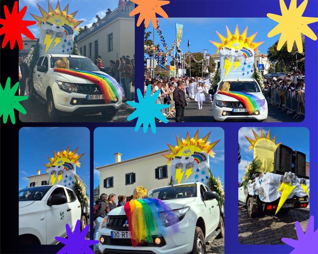 Mostrámos o TEMPO EM MOVIMENTO no Cortejo Folião da Festa dos Compadres, promovido pela Câmara do Município de Santana, com a colaboração das Juntas de Freguesia De São Jorge e a Freguesia Arco de São Jorge e as famílias das nossas crianças e alunos – levámos o calor, a cor e o encanto do clima que nunca descansa.