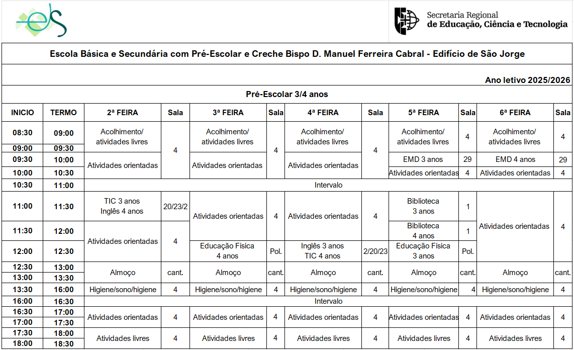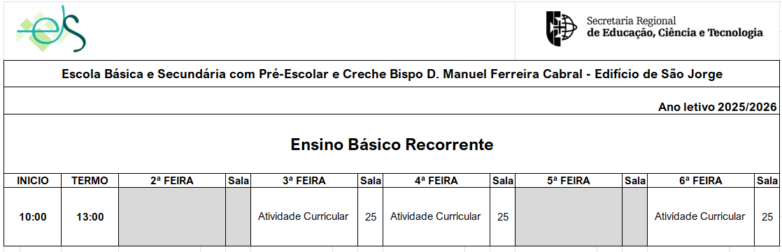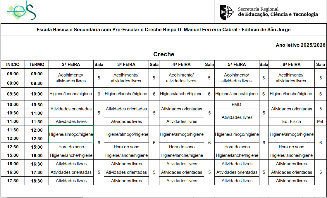 Creche, Pré-Escolar, 1.º Ciclo e Ensino Básico e Recorrente de São Jorge