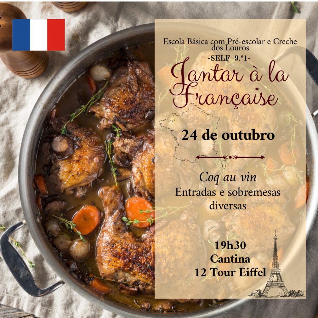 No dia 24 de outubro, pelas 19h30, realizar-se-á um jantar de angariação de fundos, para a concretização da viagem a Paris com os alunos da turma 9.º1, finalistas do projeto SELF (Secção Europeia de Língua Francesa).