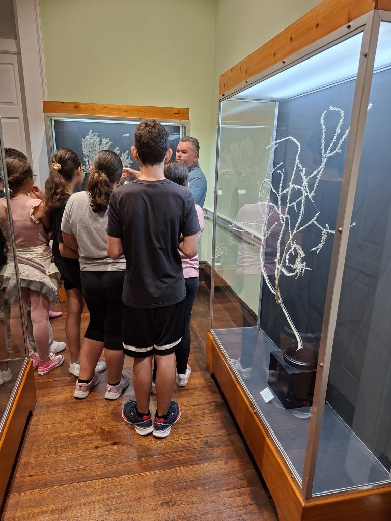 Durante a visita, os alunos tiveram a oportunidade de explorar diversas coleções representativas da biodiversidade do arquipélago da Madeira, incluindo espécies de peixes, aves, mamíferos e insetos, bem como coleções de rochas, minerais e fósseis marinhos.