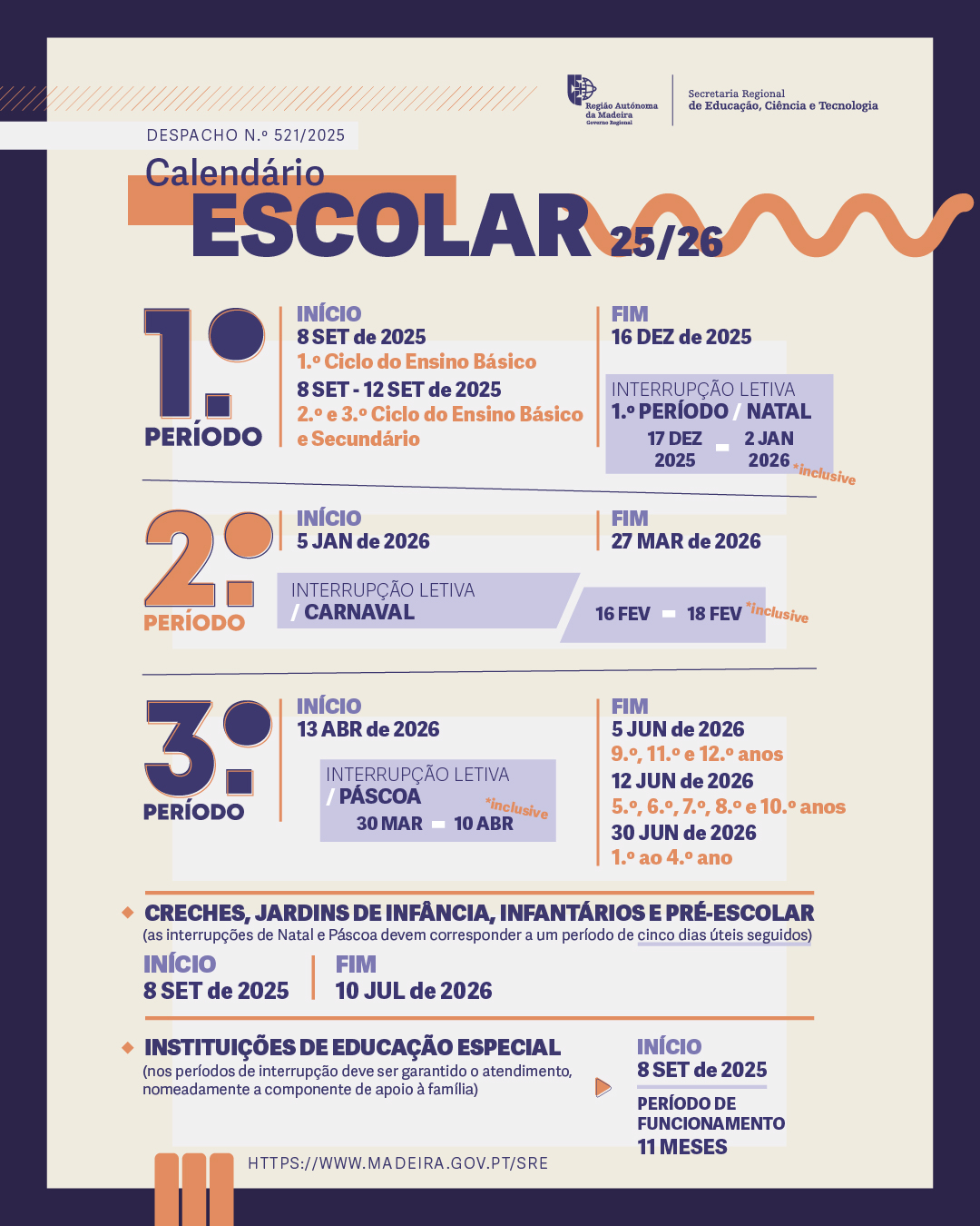 Já se encontra disponível para consulta e/ou download o cronograma início do ano escolar 2025/2026.
