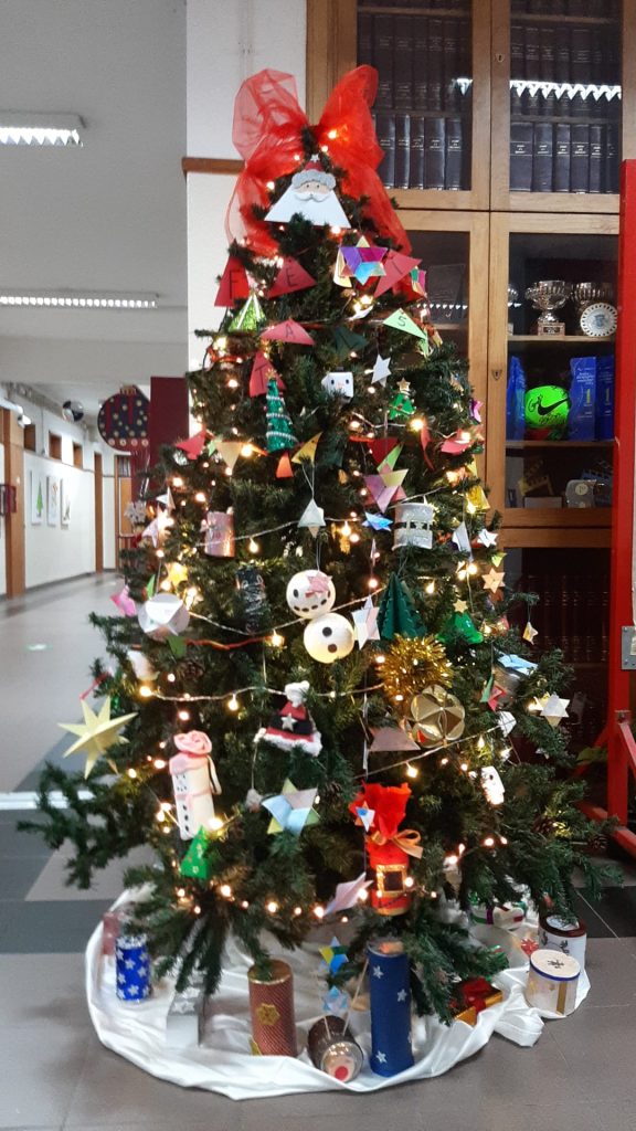 O resultado final foi surpreendente: a árvore de Natal, montada no hall de entrada da escola, foi decorada com alguns desses sólidos, enquanto outros foram colocados por baixo da árvore, simulando as prendas. A atividade permitiu integrar conceitos matemáticos com expressão artística, tornando a aprendizagem mais prática e divertida.