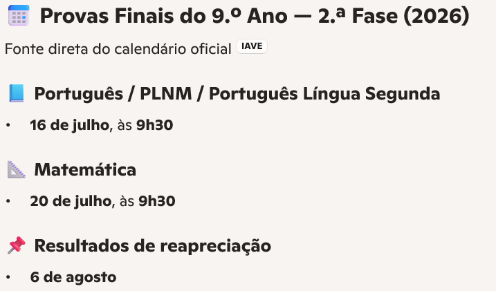 Aprova o calendário, para o ano letivo de 2025-2026, das provas de Monitorização da Aprendizagem, das provas finais do ensino básico, das provas de equivalência à frequência do ensino básico, dos exames finais nacionais do ensino secundário e das provas de equivalência à frequência do ensino secundário.
