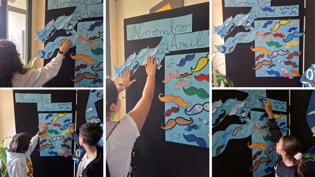 A nossa escola associou-se à causa “Novembro Azul” e foram muitos os alunos e pessoal docente que participaram em atividades, como a elaboração e afixação de bigodes feitos pelos alunos. De todo um pouco foi feito, apelando a imaginação e criatividade de todos. Alguns docentes em contexto de sala de aula fizeram uma pequena sensibilização sobre esta temática, apelando ao rastreio do Cancro da Próstata.