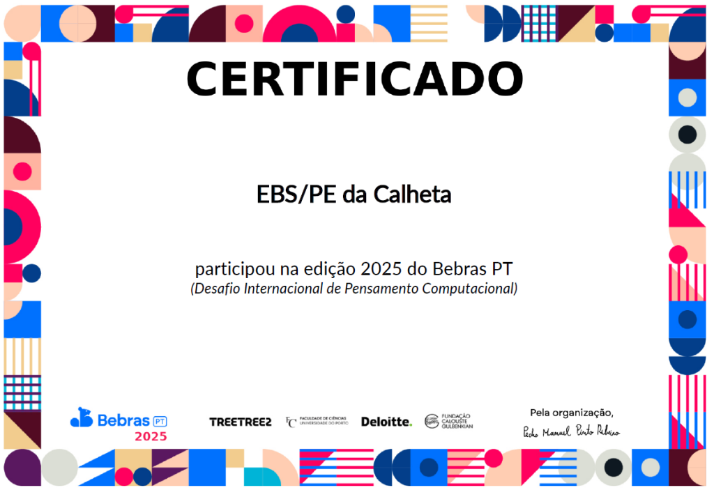 “A nossa escola participou na edição Bebras 2025, uma iniciativa de âmbito nacional que promove o pensamento computacional, desafiando os alunos a aplicar conhecimentos, estratégias e competências de lógica e resolução de problemas.