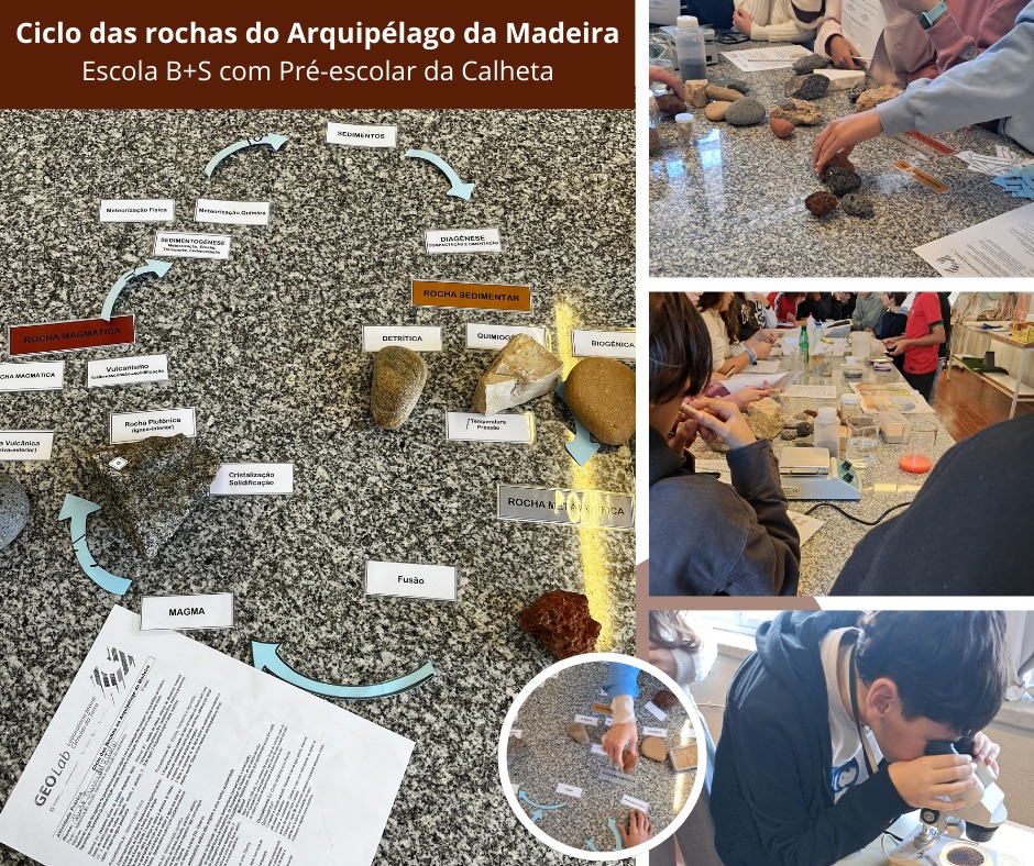 Nos dias 15 ,16 e 29 de janeiro, os alunos do 7.º (turmas 1, 2 e 3) e do 10º ano (turmas 3 e 4) embarcaram numa verdadeira viagem pelo Ciclo das Rochas do arquipélago da Madeira. Através de atividades dinâmicas e exploratórias, os discentes descobriram como se formam, transformam e se relacionam as diferentes rochas da nossa ilha, aprofundando o conhecimento sobre a sua origem vulcânica e a riqueza geológica que nos rodeia. Três dias de aprendizagem ativa, curiosidade e descoberta, que aproximaram os alunos do património natural madeirense e da importância da sua conservação.