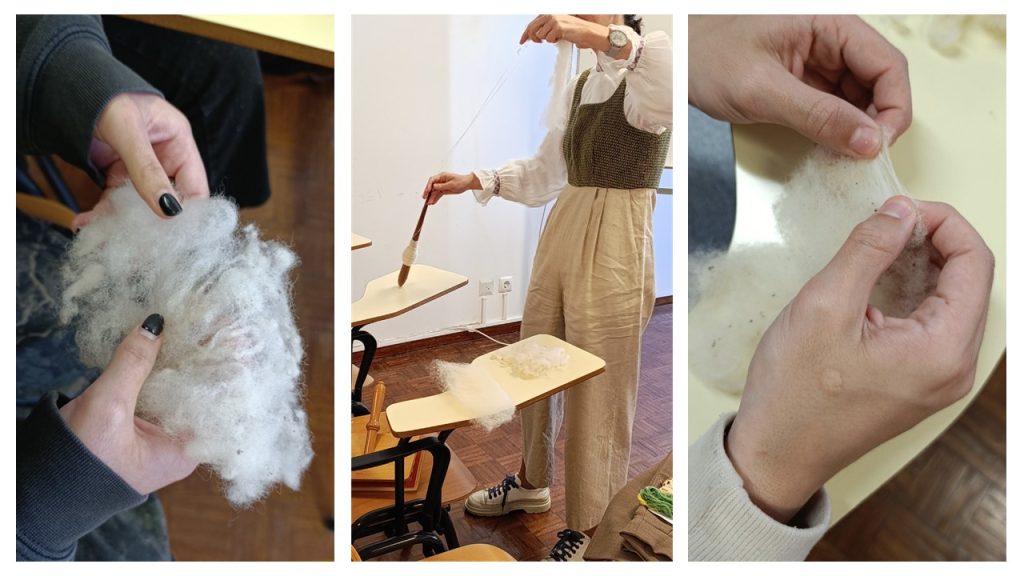 Na passada sexta-feira, dia 13 de fevereiro, a turma do curso profissional Técnico de Informação e Animação Turística do 11/5 deu as boas-vindas à artesã Francisca Inácio, que é natural da Ponta do Sol, com formação em Design de Moda. Tem um percurso profissional que combina a arte tradicional com peças contemporâneas. A turma observou vídeos sobre o processo da tecelagem, desde o fio até ao vestuário, como os corpetes. Os alunos contactaram com a lã natural, cardaram (limparam as impurezas da lã, penteando-a) e fiaram com vários tipos de fusos em madeira. Foi uma maneira diferente de partilha de conhecimentos e de saberes.