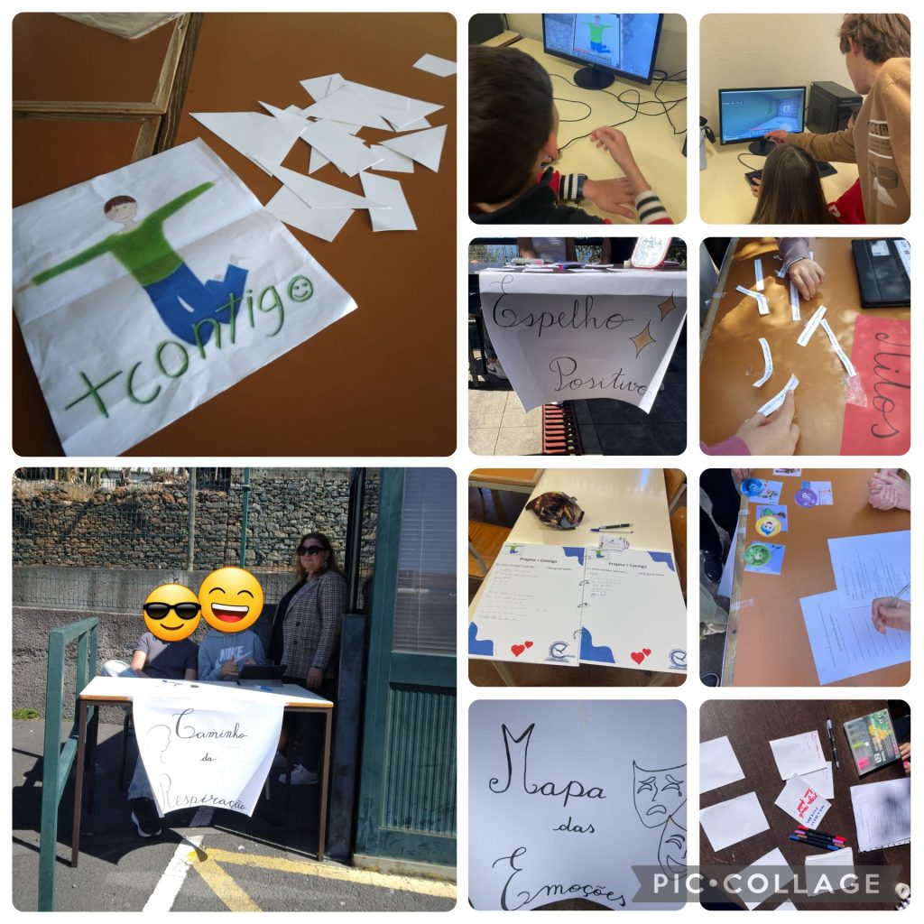 No dia 27 de março os alunos do 8/1 realizaram uma atividade no âmbito do projeto promotor de saúde mental “Mais Contigo”. Os alunos, com o apoio da diretora de turma e psicólogas que dinamizam o projeto, envolveram-se na preparação e dinamização da atividade, que se dirigiu a duas turmas do 2º ciclo. Estes alunos tiveram oportunidade de realizar um peddypaper inerente ao tema “Desafio da mente saudável”. Complementarmente, alguns alunos experimentaram um jogo no Minecraft – “Mundo Mais Contigo”, criado pelos alunos da turma, que englobou, igualmente, tarefas relacionadas com a saúde mental. De realçar a iniciativa e envolvimento dos alunos e diretora de turma no sentido de proporcionar aos colegas uma experiência lúdica e, simultaneamente, sensibilizadora para o tema da saúde mental e emocional.