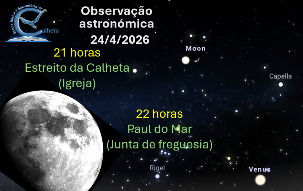O Grupo de Físico-Química da EBS/PE da Calheta promove, no próximo dia 24 de abril (sexta-feira), uma observação astronómica em duas freguesias do concelho da Calheta: