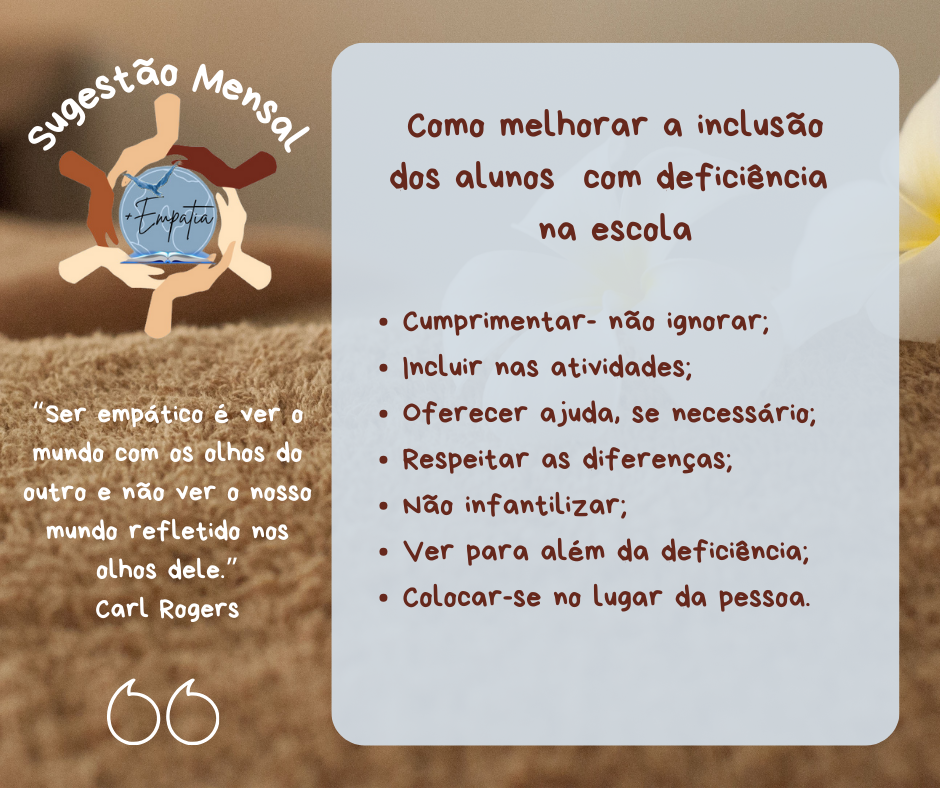 O mês de dezembro é, invariavelmente, associado à época natalícia, à família, aos amigos e às prendas, e, principalmente, à esperança de um mundo melhor. No mês de dezembro assinala-se também o Dia Internacional da Pessoa com Deficiência (3) e o Dia Nacional da Pessoa com Deficiência (9) e por isso gostaríamos de deixar algumas sugestões para melhorar a inclusão das pessoas com deficiência na escola. Deixamos também um pequeno vídeo que mostra como a deficiência nos faz sentir desconfortáveis e como o preconceito é, na verdade, adquirido. Vale a pena refletir sobre estas questões. Não nos podemos esquecer que a inclusão começa com cada um de nós e que só poderemos ter um mundo melhor quando formos capazes de aceitar e incluir as diferenças.