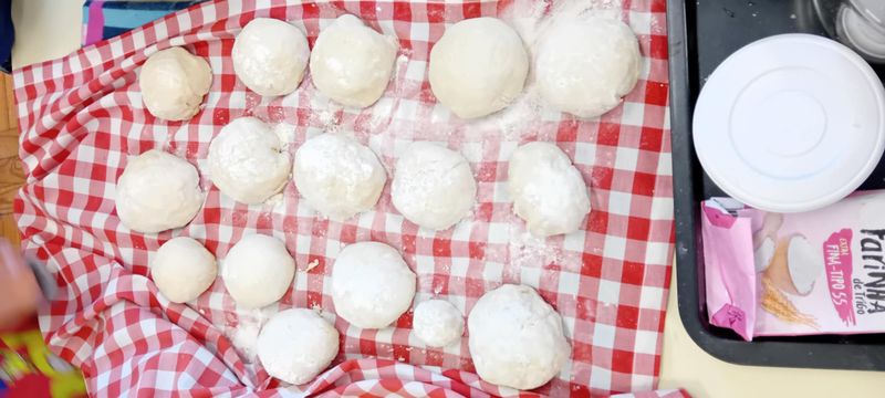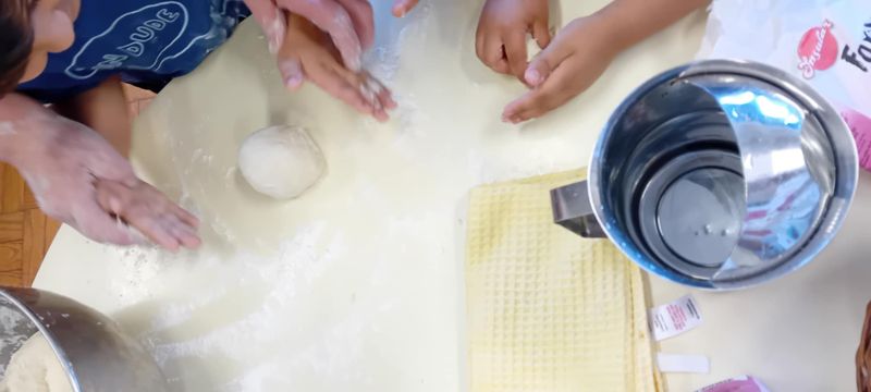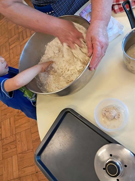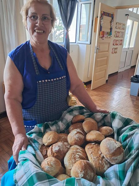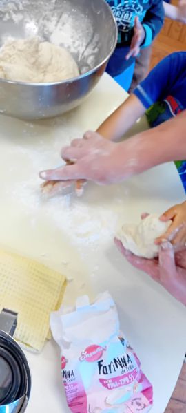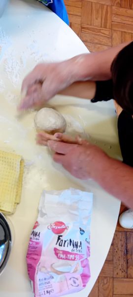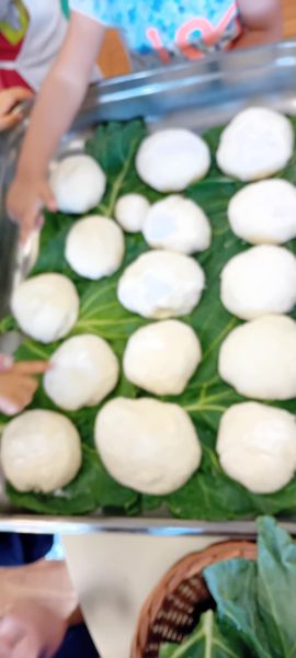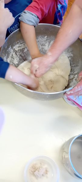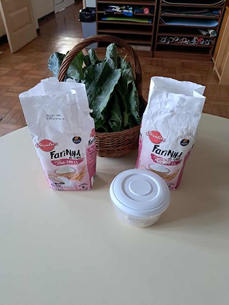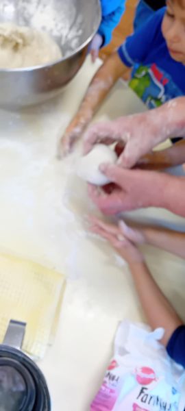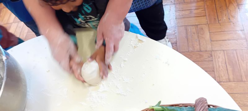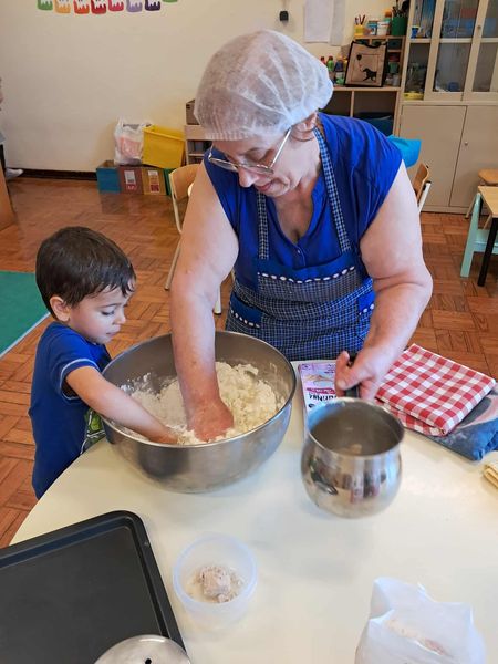 A avó de uma criança do grupo veio a sala mostrar e ensinar como se faz o pão.