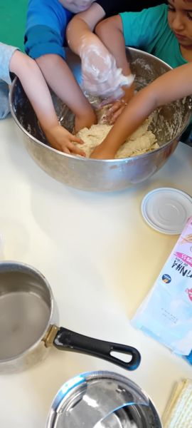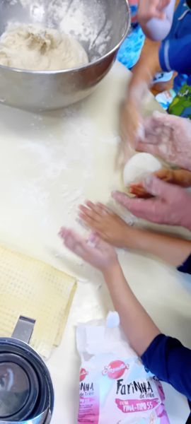 A crianças gostaram muito de manipular e explorar os ingredientes até formarem a massa do pão. As crianças gostaram muito de realizar a atividade e gostaram mais de provar