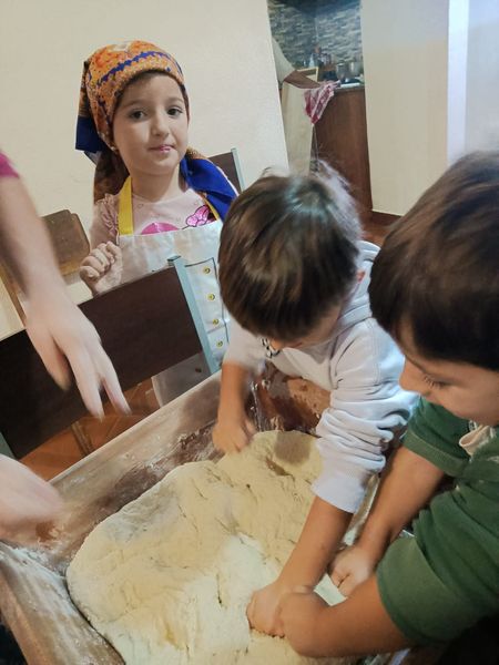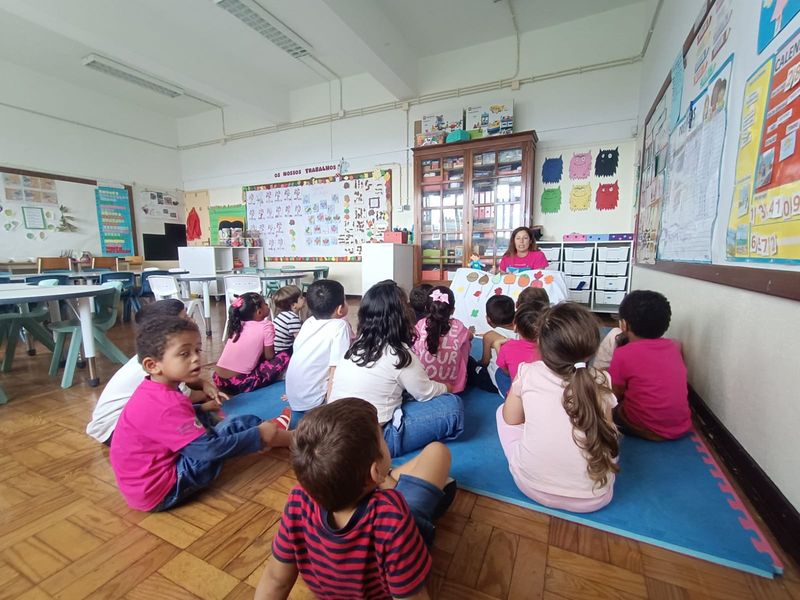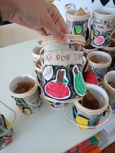 “Vem aí o Pão-por-Deus, dia de muita alegria…” , lá diz a canção mais cantada nestes dias aqui na nossa escola pelas crianças das salas de Pré-escolar. E, realmente, assim foi, um dia de muita alegria (e cansaço) para as nossas crianças e, também, para aqueles a quem elas dirigiram estes versos. Desde os funcionários e utentes do Centro de Saúde, da Câmara Municipal, aos agentes da autoridade locais. Foram recebidas com muito carinho em todas estas instituições e, também, elas ofereceram um pouco da sua alegria contagiante. Durante a semana tiveram a oportunidade de verem e, participarem, na confeção do pão na casa de uma das crianças da sala, onde foram recebidas com muito carinho pelos familiares da colega. Ouviram a história dos frutos do Pão-por-Deus e representaram graficamente os diversos frutos da época para colocarem na decoração do seu cestinho. Também fizeram uma visita aos mais pequeninos da nossa escola – as crianças da Creche.