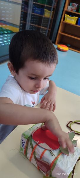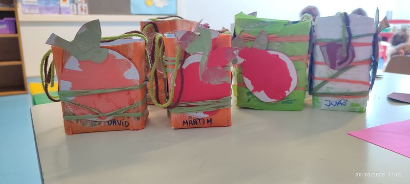 As crianças desenvolveram várias atividades de linguagens expressivas para trabalhar esta data. Foram elaborados e decorados sacos do Pão-por-Deus , as crianças ouviram a história “A última castanha” em suporte digital, aprenderam a canção do pão-por-Deus e foi realizada uma atividade sensorial, na qual as crianças observaram fruto de outono, tocaram para sentir as diferentes texturas e identificar a cor de cada fruto. No decorrer das atividades, as crianças demonstraram interesse, curiosidade e motivação. Alguns momentos musicais foram enriquecidos com o uso de clavas e pandeireta. O grupo revela muito interesse e curiosidade por instrumentos sonoros/ musicais.