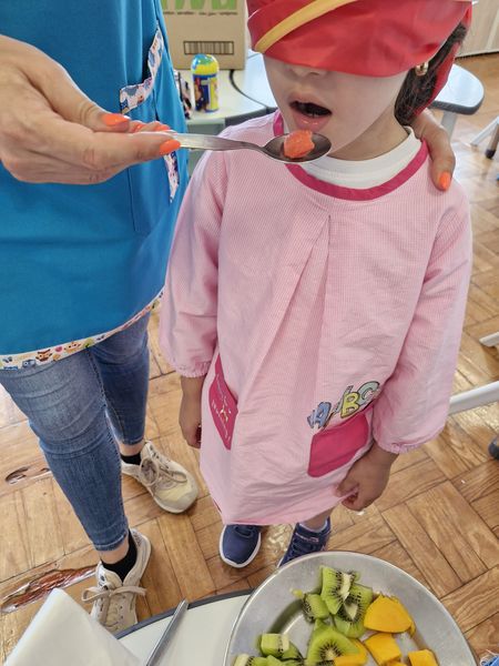 Durante uma semana as crianças da sala de pré-escolar 2 exploraram com os 5 sentidos diversos alimentos. Foram surpreendidos com novos sabores, texturas e cheiros, assim como brincaram com os nomes de algumas frutas fazendo a divisão silábica. “Aprender a saborear é tão divertido, quando o saber vem num prato colorido!”.