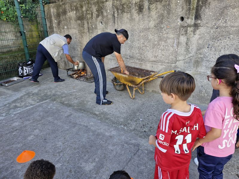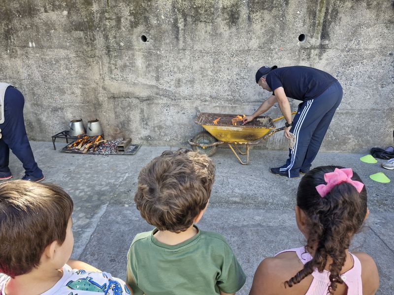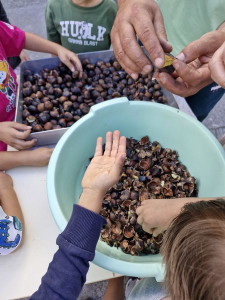 Na sala de Pré-escolar 2 as crianças, além de terem explorado a Lenda de São Martinho através de diversos recursos, elaboraram um cartucho para as castanhas, conheceram a história de uma menina muito especial – a Maria Castanha – e finalizaram esta festividade com um tradicional Magusto. Viram as castanhas serem assadas no meio da caruma como era feito pelos seus antepassados e sujaram as mãos, e as caras, a descascar as suas castanhas.