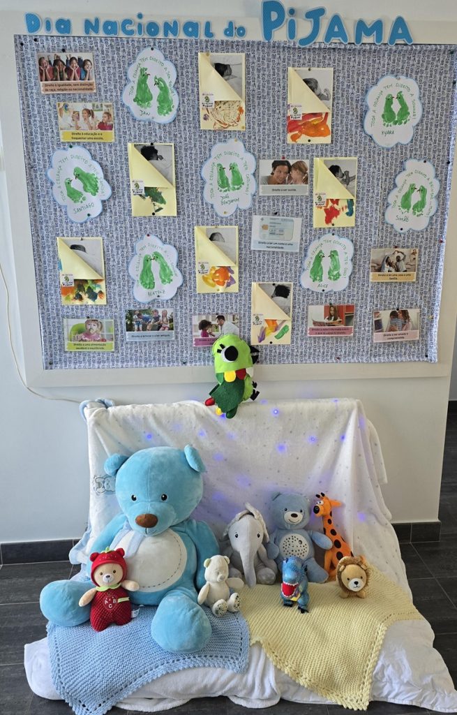 No “Dia do Pijama” a Sala Arco-Íris vestiu-se a rigor, e as crianças brincaram, dançaram e divertiram-se muito com o Quincas e os seus peluches.
