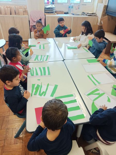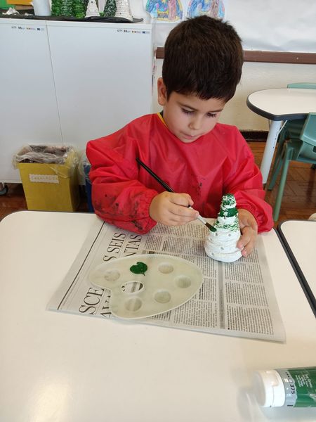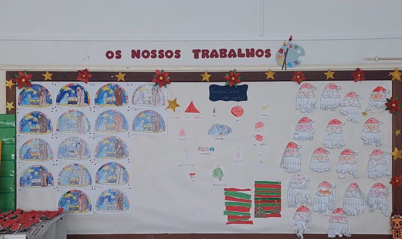 | Em dezembro, realizámos diversas de atividades centradas no Natal, proporcionando às crianças experiências ricas, significativas e promotoras do seu desenvolvimento global. Houve um diálogo em grande grupo onde planeamos, em conjunto com as crianças, as nossas decorações de Natal. Iniciámos com a construção de um Pai Natal, atividade que envolveu pintura, recorte e enrolamento, permitindo explorar diferentes técnicas de expressão plástica. Trabalhámos também o vocabulário natalício, cada criança desenhou e escreveu uma palavra relacionada com o Natal, realizando posteriormente a divisão silábica, reforçando a consciência fonológica e o contacto com a linguagem escrita. Ao longo do mês, dedicámo-nos à leitura e exploração de contos, poesias e canções de Natal, ampliando o imaginário infantil e promovendo o gosto pela literatura. Desenvolvemos ainda um trabalho gráfico que incluiu recorte em tiras e criação de grafismos inspirados nas cores de Natal. Após ouvirmos a história do nascimento de Jesus, as crianças pintaram um presépio, atividade que favoreceu a expressão artística e a compreensão do significado cultural do Natal. Para a prenda, cada criança pintou um pinheirinho moldado em massa de modelar, estimulando a criatividade e a motricidade fina. O postal de Natal foi elaborado através da técnica de picotagem e pintura, também com a representação de um pinheirinho. Complementámos estas experiências com momentos muito especiais fora da sala, realizámos uma ida ao teatro e acompanhamos a ida ao circo, proporcionando contacto com diferentes formas de expressão artística e cultural. Neste mês tivemos ainda uma atividade culinária muito apreciada pelas crianças, a confeção de broas, que permitiu trabalhar sequências, medidas, motricidade fina e cooperação. Com estas atividades, procurámos desenvolver competências essenciais como a motricidade fina, a atenção, a concentração e o enriquecimento do vocabulário. Durante o mês decorreram também vários ensaios para a Festa de Natal. As crianças participaram em conjunto com o grupo da Pré I, interpretando a canção “O Pinheirinho” e declamaram a poesia “Uma Estrela Brilhante”, demonstrando entusiasmo, envolvimento e uma maior confiança na apresentação em grupo. |