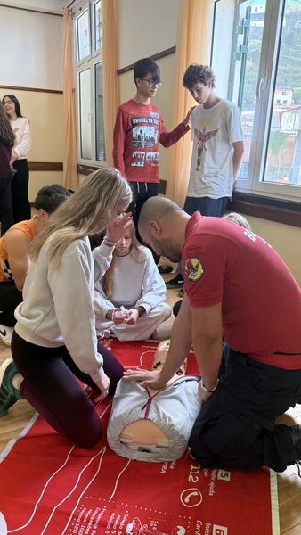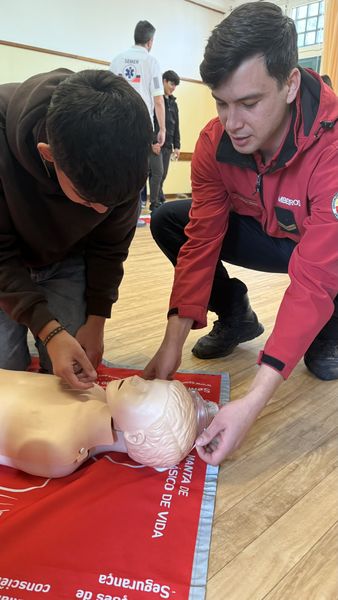 No dia 13 de janeiro teve lugar na escola uma ação de sensibilização dirigida aos alunos do 10.º ano, dinamizada por elementos da corporação de bombeiros e por uma equipa de enfermeiros de emergência médica, centrada nas práticas de reanimação e de Suporte Básico de Vida (SBV/CPR). A sessão teve como principal objetivo dotar os alunos de conhecimentos e procedimentos básicos a adotar em situações de emergência, promovendo atitudes responsáveis e potenciando uma maior consciência cívica face à importância da intervenção precoce em contextos de risco. A atividade revelou-se bastante pertinente e bem acolhida pelos alunos, que participaram de forma interessada e empenhada.