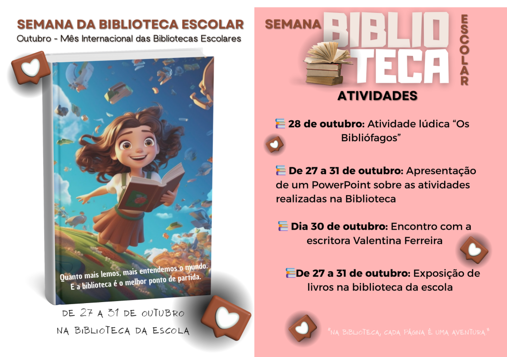 #SemanaDaBibliotecaEscolar#LeituraÉVida#MêsDasBibliotecasEscolares#CadaPáginaÉUmaAventura#LeituraNaEscola