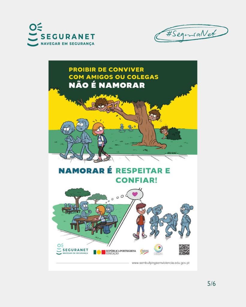 Se estás numa relação afetiva que te faz sentir mal ou conheces alguém que esteja, não fiques sozinho. Fala com um professor ou um adulto da tua confiança, podem ajudar-te a encontrar apoio e proteger-te.