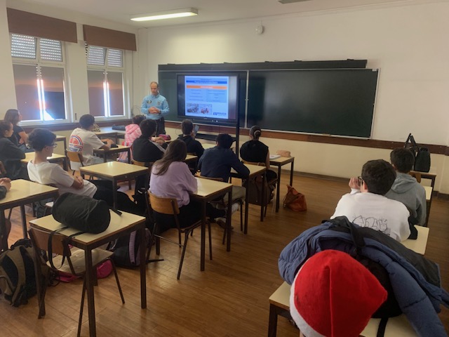 A turma B do 9.º ano participou, no dia 3 de dezembro, numa ação de sensibilização intitulada “A distância de segurança e a prevenção de acidentes rodoviários”, cujo principal objetivo foi alertar para a importância de manter a distância de segurança na prevenção de acidentes rodoviários, articulando estes conteúdos com a disciplina de Física e Química. Esta ação resultou de uma parceria entre a disciplina de Física e Química, o PRER e a PSP de Santa Cruz. Os alunos mostraram-se atentos e curiosos, colocaram questões muito pertinentes e a sua participação contribuiu de forma significativa para a formação, para o desenvolvimento de competências e para o reforço da consciência cívica. Esta iniciativa reforçou o papel fundamental do Plano Regional de Educação Rodoviária – PRER na formação integral dos nossos alunos, promovendo não só a segurança rodoviária, mas também valores de responsabilidade e cidadania.