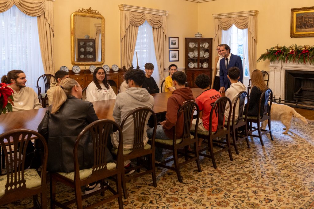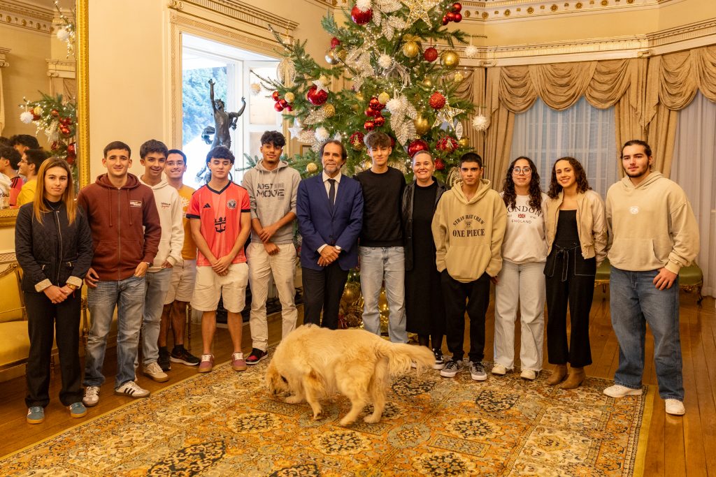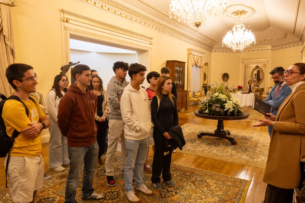 No âmbito da disciplina de Ciência Política, a visita de estudo realizada hoje, dia 16 de dezembro, pelos alunos da turma 12.ºA teve como principais objetivos conhecer o funcionamento das instituições políticas regionais, compreender a importância da Quinta Vigia enquanto residência oficial do Presidente do Governo Regional e relacionar os conteúdos lecionados em sala de aula com a realidade institucional. Durante a visita à Quinta Vigia, inicialmente denominada “Quinta das Angústias”, os alunos foram recebidos em vários espaços da residência, onde tiveram a oportunidade de conhecer a história da Quinta, bem como o funcionamento da residência oficial. A visita incluiu ainda um percurso pelos jardins da Quinta Vigia, permitindo o contacto com o património histórico e paisagístico do local. Um dos momentos mais marcantes da visita foi a oportunidade única de estarem com o Dr. Miguel Albuquerque, Presidente do Governo Regional da Madeira, no decorrer desta iniciativa educativa. Esta atividade revelou-se uma experiência enriquecedora, contribuindo para o aprofundamento dos conhecimentos adquiridos na disciplina de Ciência Política e para a formação cívica dos alunos.