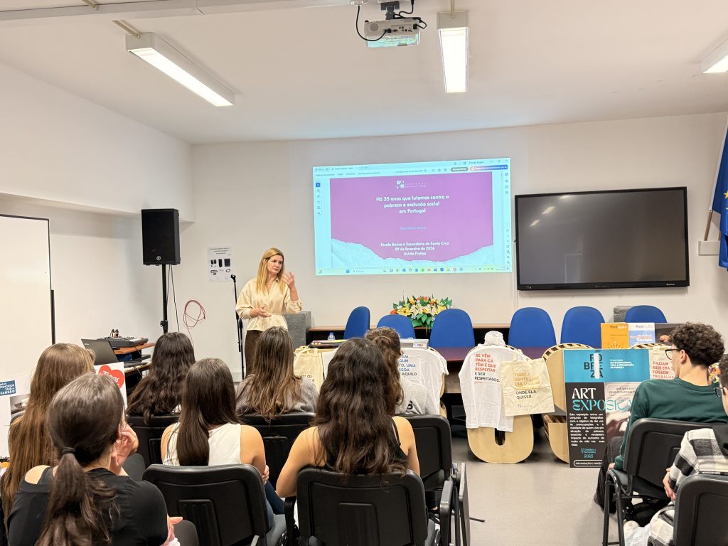 A sessão contou com a participação da EAPN – Rede Europeia Anti-Pobreza, uma organização que desempenha um papel fundamental no combate à pobreza e à exclusão social, tanto a nível nacional como europeu. Ao longo da palestra, os alunos tiveram a oportunidade de compreender melhor o trabalho desenvolvido pela EAPN, os seus objetivos, áreas de intervenção e a sua importância na promoção da justiça social e da igualdade de oportunidades.