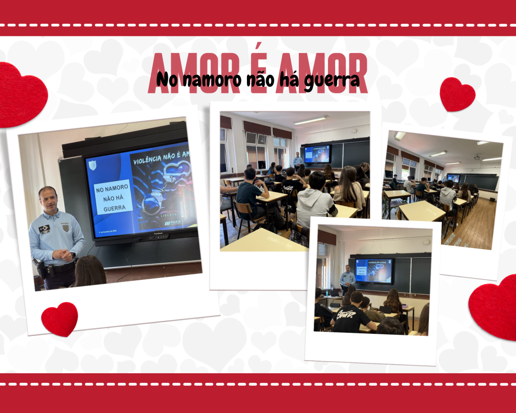 No dia 11 de fevereiro, entre as 09h55 e as 11h25, realizou-se, na sala 401, uma ação de sensibilização subordinada ao tema “No namoro não há guerra”, dinamizada pelo agente Menezes da PSP de Santa Cruz, destinada à turma do 9.º A.