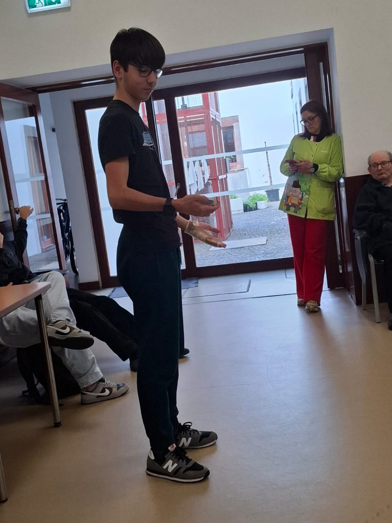 No dia 26 de março, os alunos visitaram os utentes da Santa Casa da Misericórdia de Santa Cruz. A atividade “Baú de Memórias” convidou cada participante a partilhar um objeto especial, evocando histórias marcantes. O encontro promoveu diálogo, emoção e partilha entre gerações, valorizando recordações e fortalecendo laços afetivos, num ambiente acolhedor que incentivou reflexão, afeto e carinho.